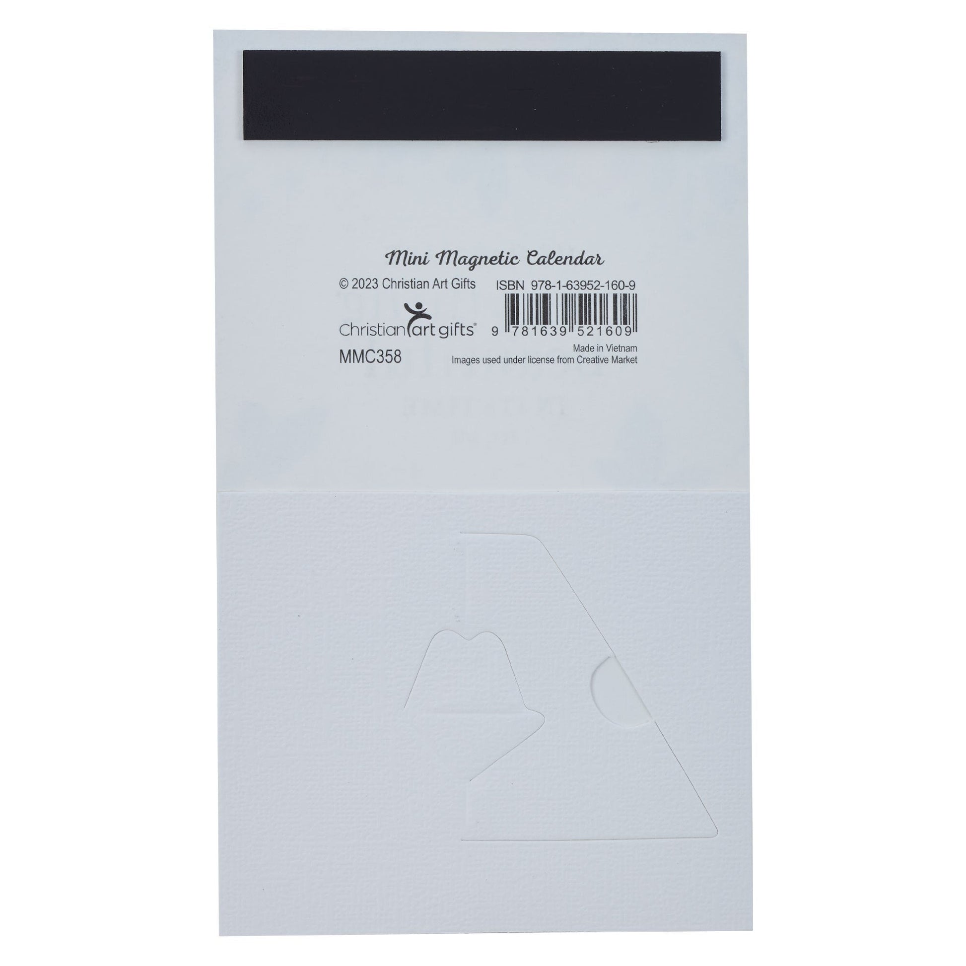 The pop-out stand gives versatility to the magnetic calendar and lets you set it on a desk or table if no magnetic surface is available. But, if you have a locker or filing cabinet, the strong magnet on the back will ensure a tight hold. Twelve monthly pages are stapled securely together but can be torn off at the end of the month. An additional Scripture verse is printed at the bottom of each monthly page.
