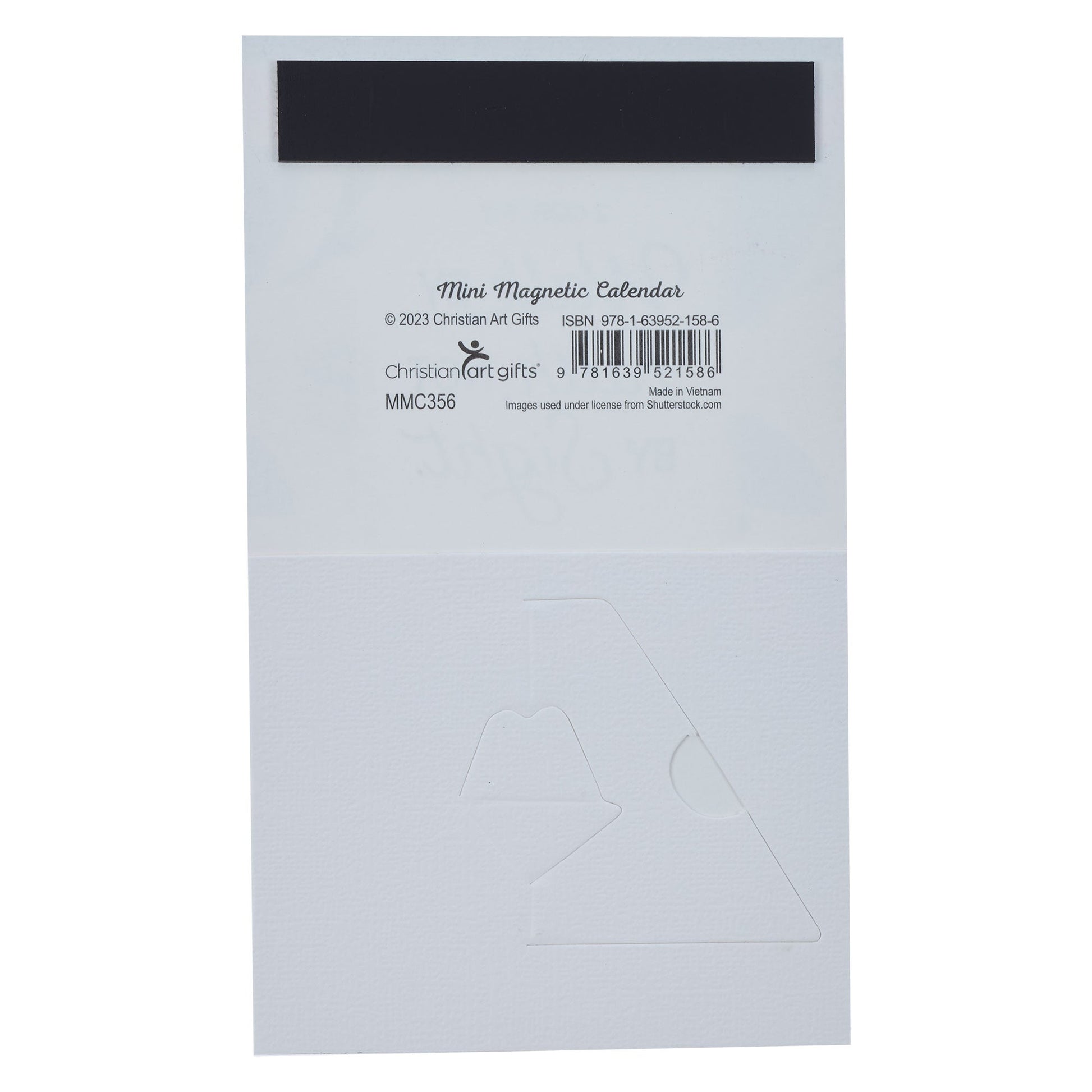 The pop-out stand gives versatility to the magnetic calendar and lets you set it on a desk or table if no magnetic surface is available. But, if you have a locker or filing cabinet, the strong magnet on the back will ensure a tight hold. Twelve monthly pages are stapled securely together but can be torn off at the end of the month. A unique Scripture is assigned for each month and is helpful for memorization or meditation.