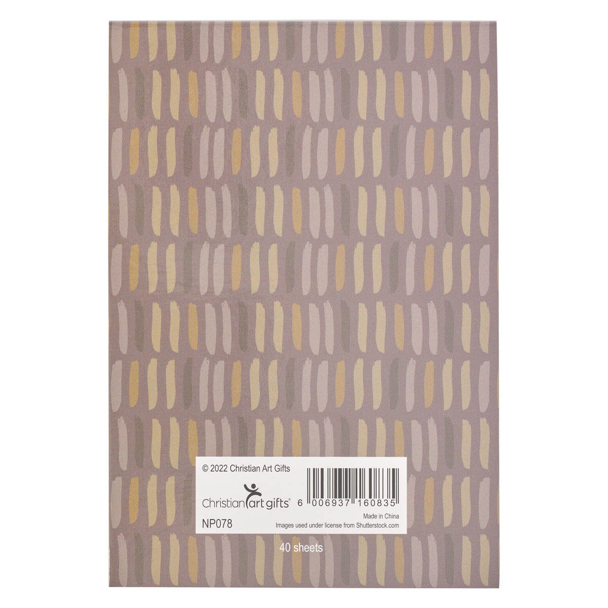 The same brushstroke border design is repeated on the back cover, making it as delightful from the back as it is from the front. Each of the 40 tear-off pages is white and unlined, leaving plenty of room to write or draw. The bottom of each page has a yellow border with the same image and sentiment as the front cover, tying the design together seamlessly.