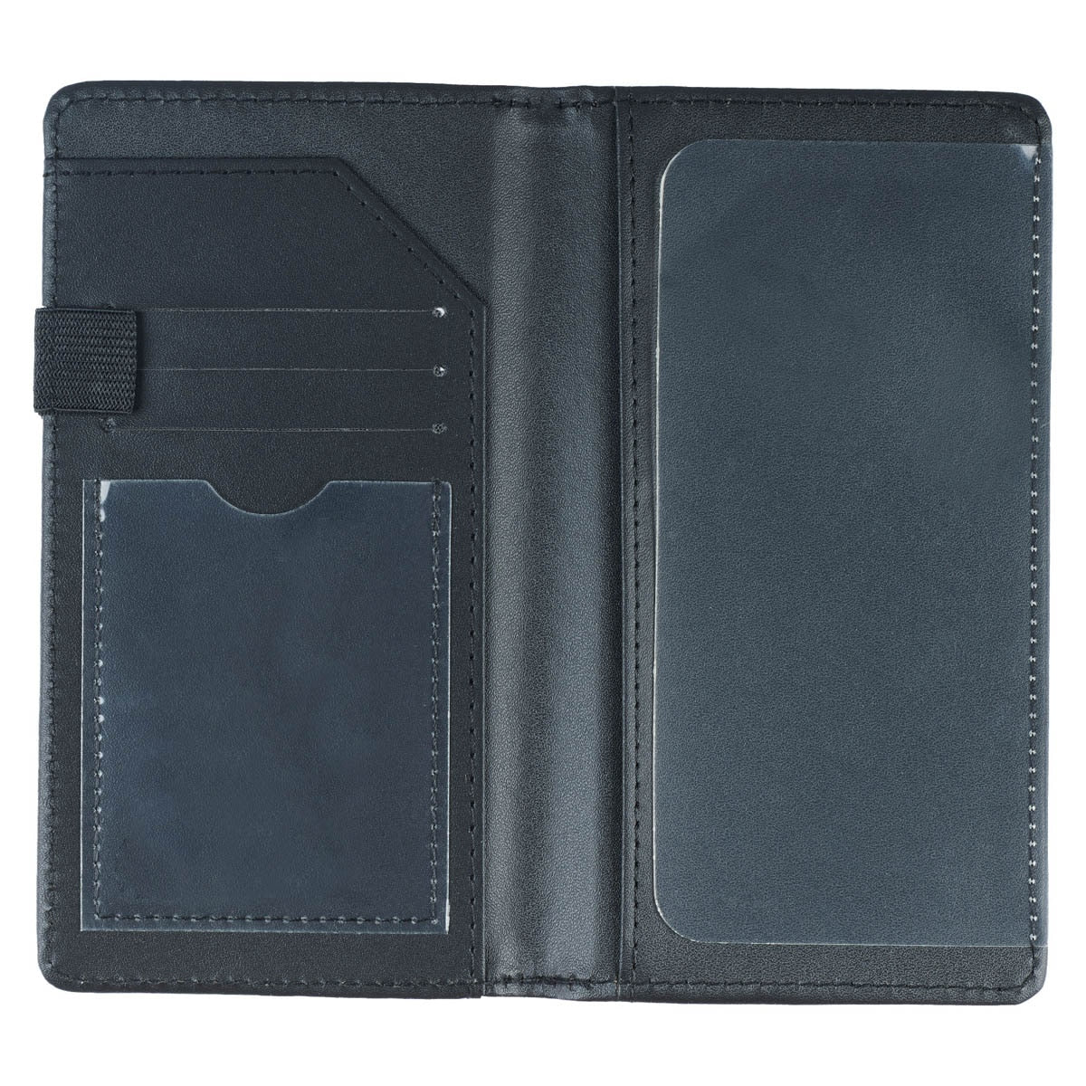 Pronounced topstitching along the checkbook wallet's exterior edges and rounded corners ensures durability and adds to its visual appeal. Inside, the wallet reveals two slip pockets to organize your financial essentials. The top pocket is a mini-hub of organization, with slots for credit cards, a transparent I.D. compartment, and an elastic pen holder. Meanwhile, the lower pocket accommodates a checkbook and its attached plastic divider safeguards against damage to carbon copies.