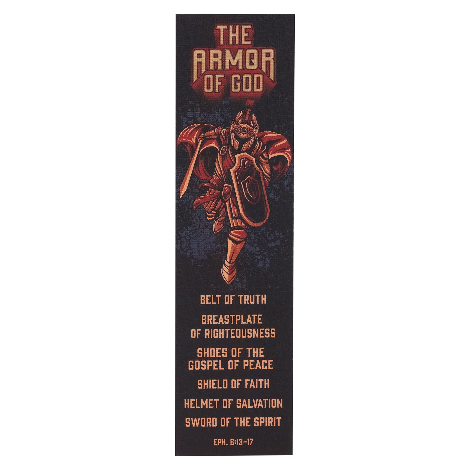 Each bookmark within this 10-bookmark set is full-color printed and gloss-laminated to ensure they withstand the handling of any young warrior. With space for personalization on the back, you can add a special message or the child's name to make it even more special. An additional Scripture verse from Ephesians is printed on the back.
