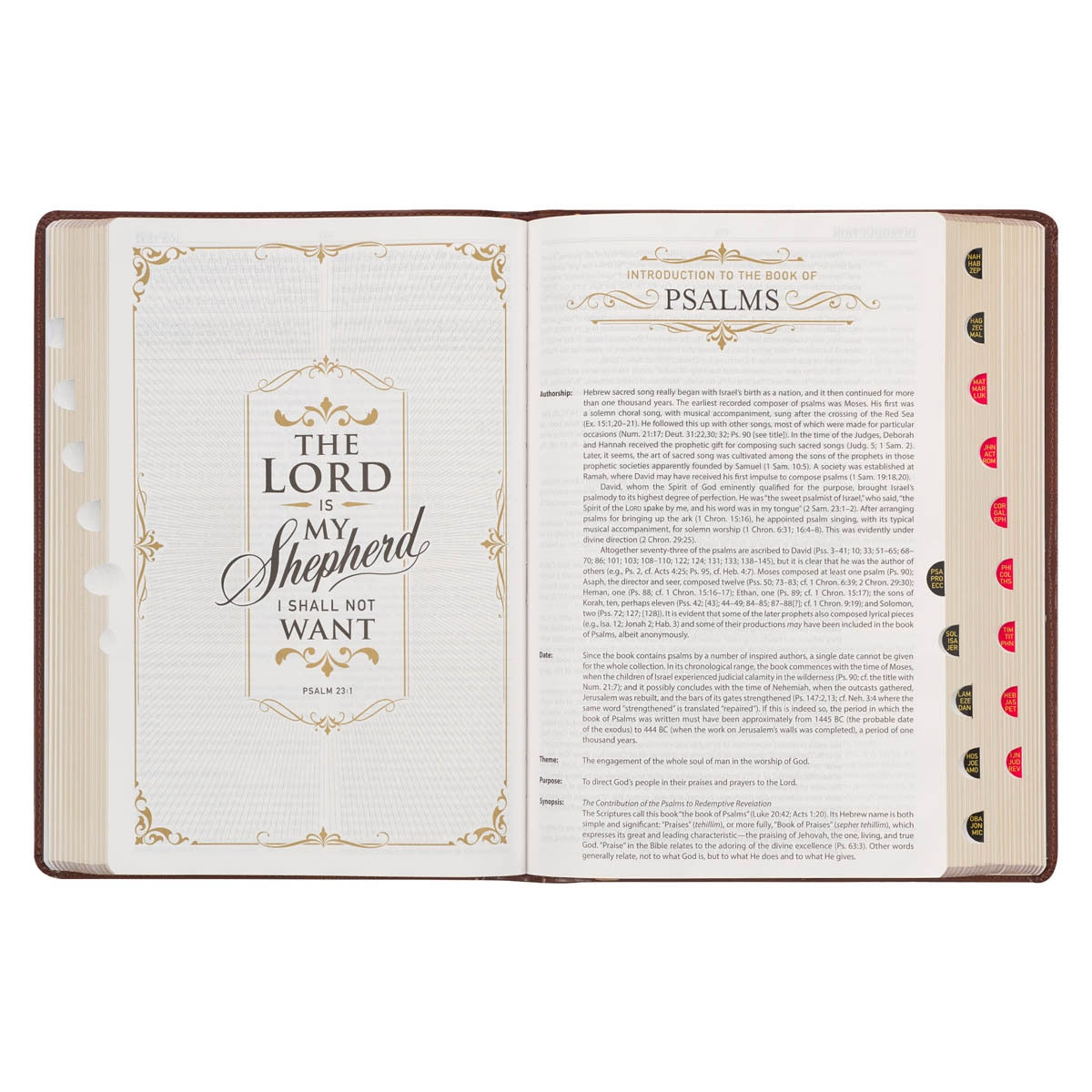 Immerse yourself in a new way of studying the classic King James Version text with the polished Art Nouveau Framed Toffee Brown Faux Leather Large Print King James Study Bible with Thumb Index. This updated large print study Bible places a strong emphasis on personal and family devotions, creating a meaningful and enriching study experience.