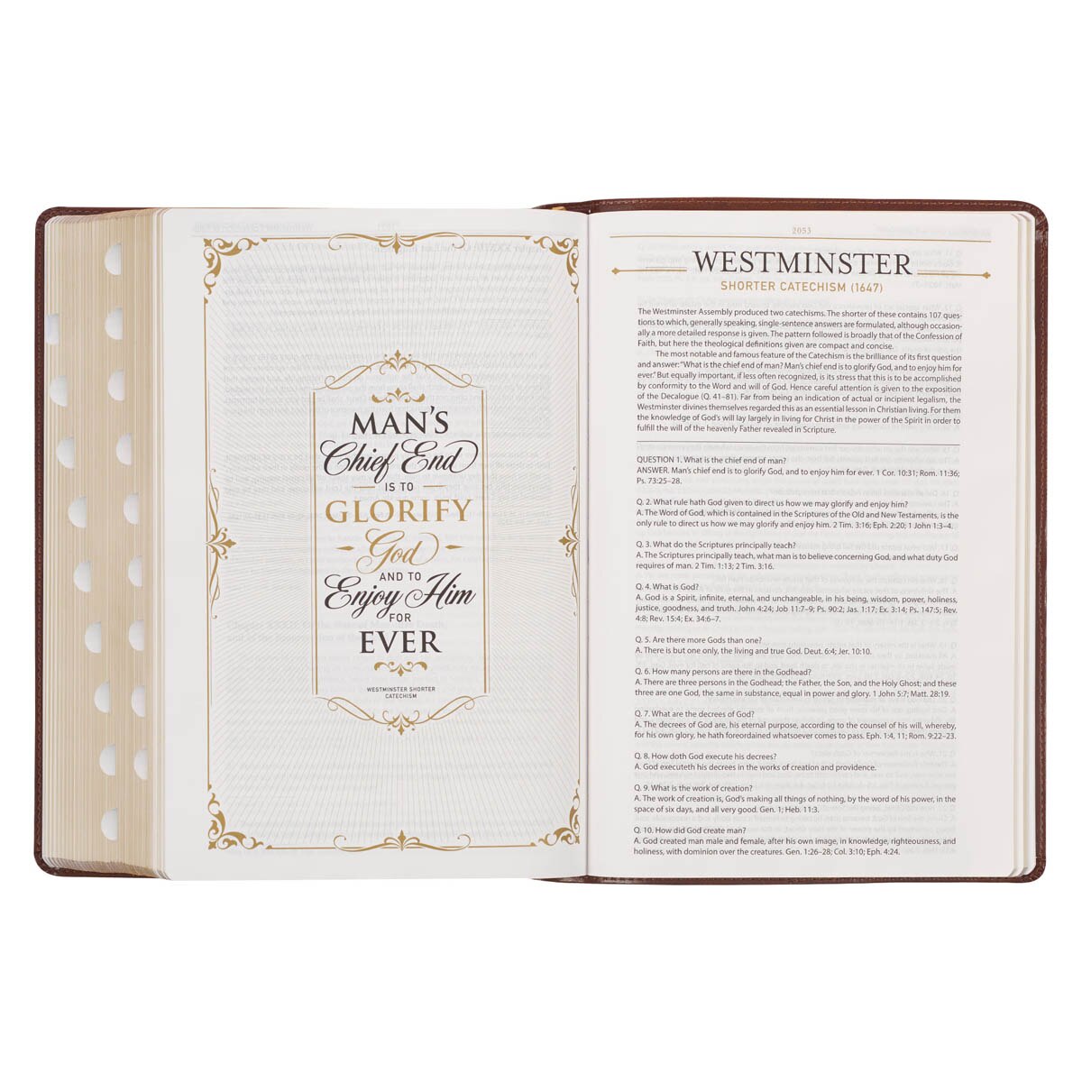 Delve into the rich history of the KJV Bible with a dedicated section that explores its tradition, text, and translation. Each book of the Bible is accompanied by an enlightening introduction. At the end of every chapter, you'll find personal or family devotions, fostering a deeper connection with the text. Thousands of explanatory study notes shed light on both the content and archaic language of the Bible. Explore 50 key teachings through insightful essays. A comprehensive concordance and 8 full-color maps offer valuable resources. The Bible also features a section on living life as a Christian, comprising 37 essays. Additionally, a brief synopsis of 20 centuries of church history is provided, along with ancient creeds, confessions, and catechisms, including the Apostles' Creed, Nicene Creed, Athanasian Creed, Belgic Confessions, Heidelberg Catechism, Canons of Dort, Westminster Confessions, Westminster Superior Catechism, and the Westminster Larger Catechism.