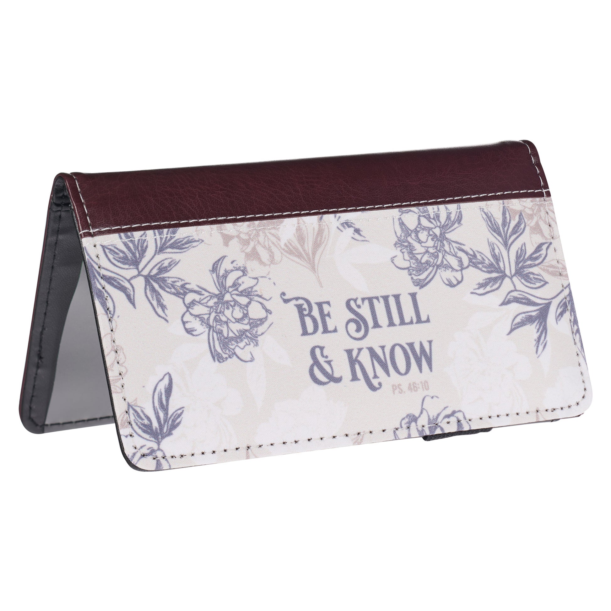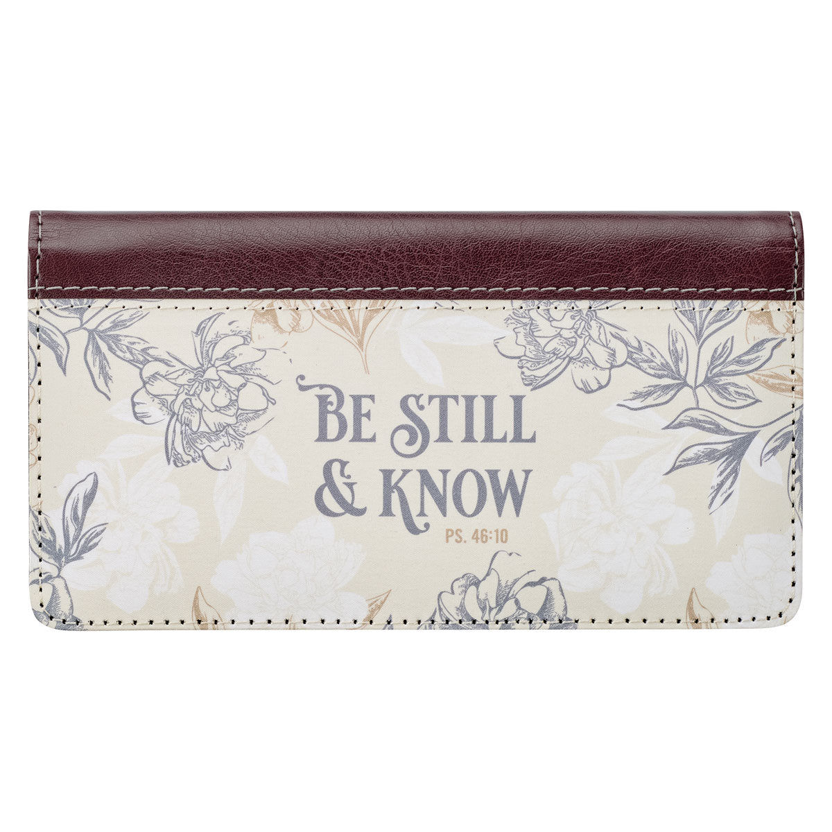 Be Still and Know Neutral Florals Faux Leather Checkbook Wallet – Psalm 46:10