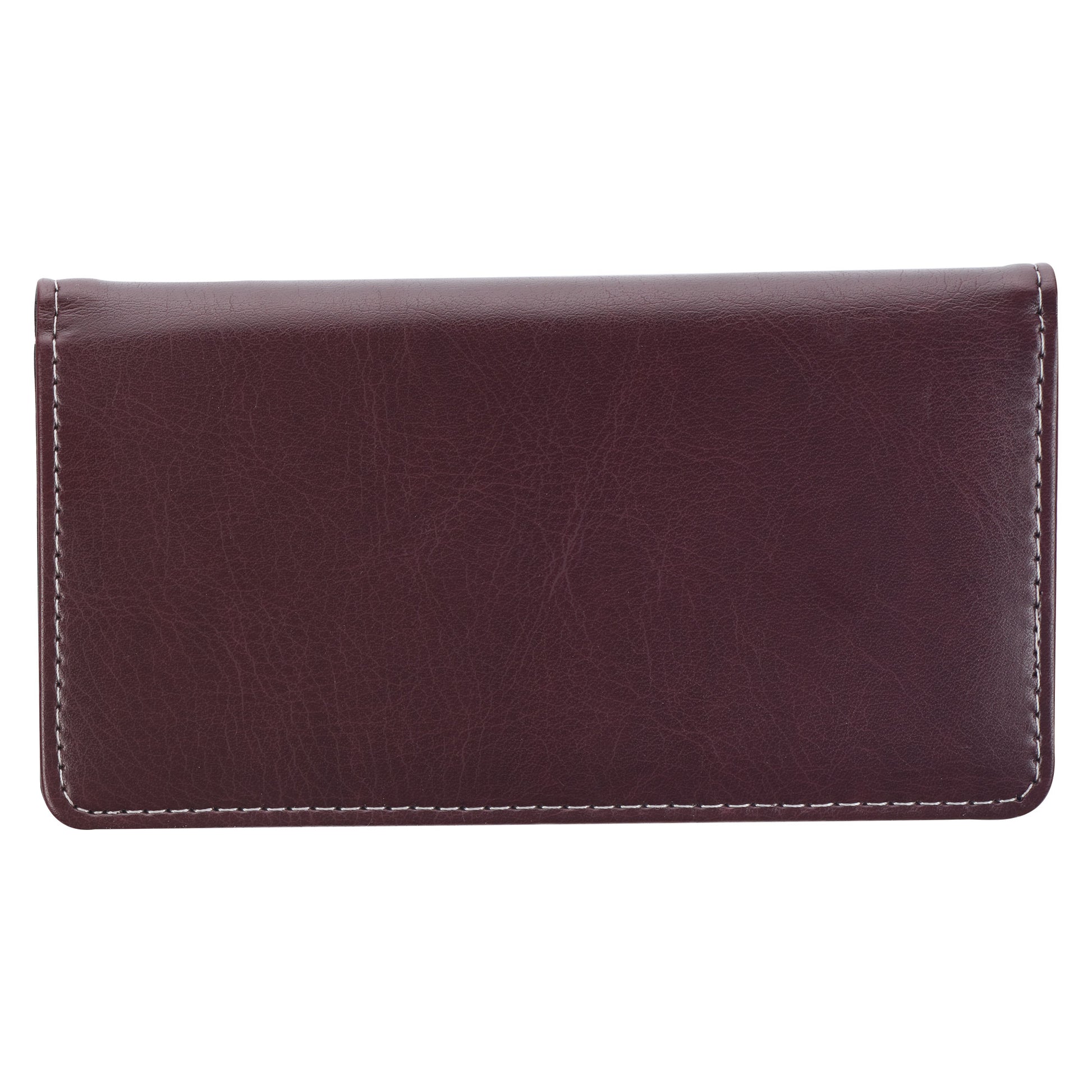 The cream-colored topstitching along the edges of this checkbook wallet gives a polished touch to the already strong faux leather. Open the cover, and you will see one interior slip pocket with three credit card slots and a clear I.D. panel. Tuck your checkbook into the second slip pocket and use the plastic divider to keep your pen pressure from damaging subsequent carbon copies. An elastic pen holder is included for your convenience.
