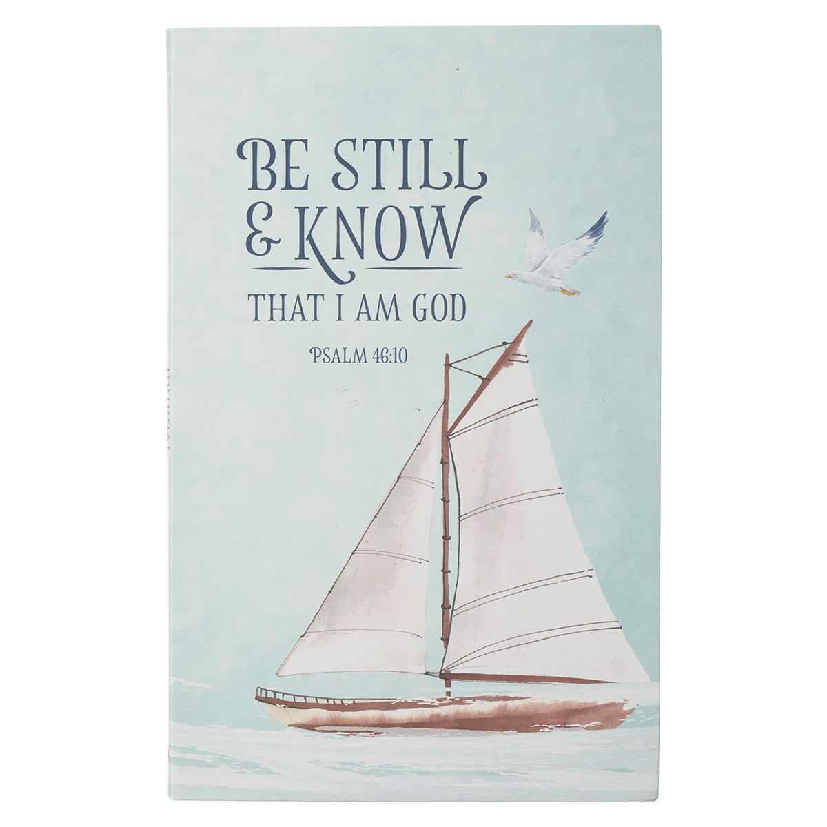 The heavy-duty cardboard cover is decorated with a serene sailboat scene. A seagull in mid-flight draws attention to the sentiment that is printed in blue foil against a powder blue sky.