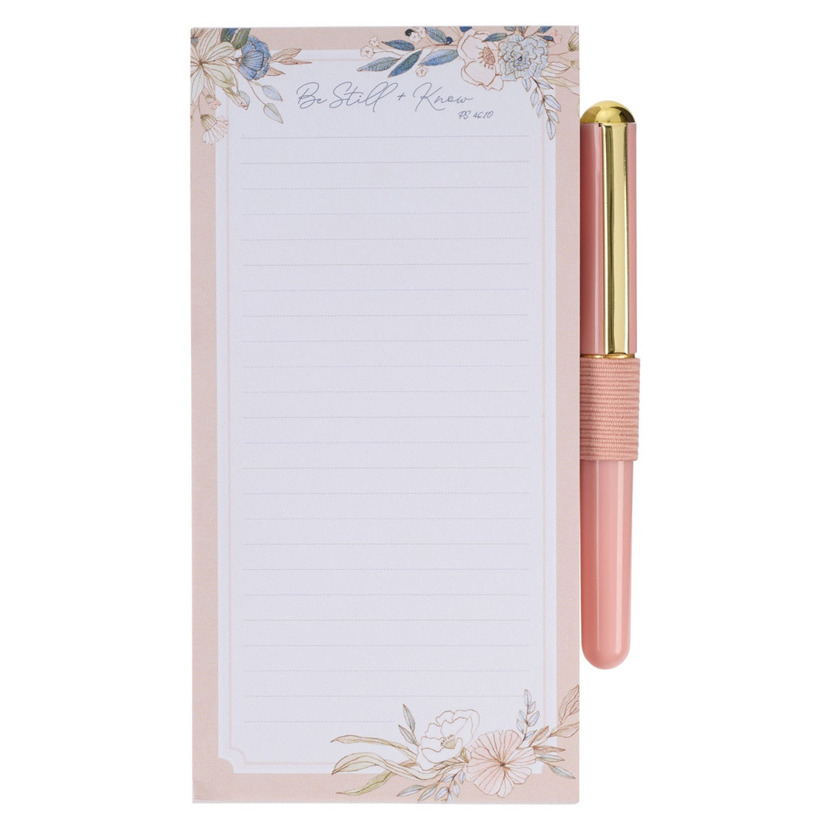 Be Still Peaceful Peach Blossoms Magnetic Notepad and Pen Gift Set - Psalm 46:10