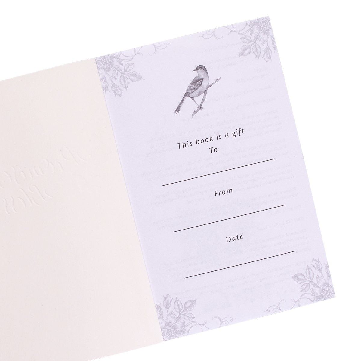 The back cover features two fluttering butterflies above a Scripture verse that sets the theme for the devotional. The bird motif is repeated on the back cover, and the content is introduced by a verse that acts as the theme for the devotional.