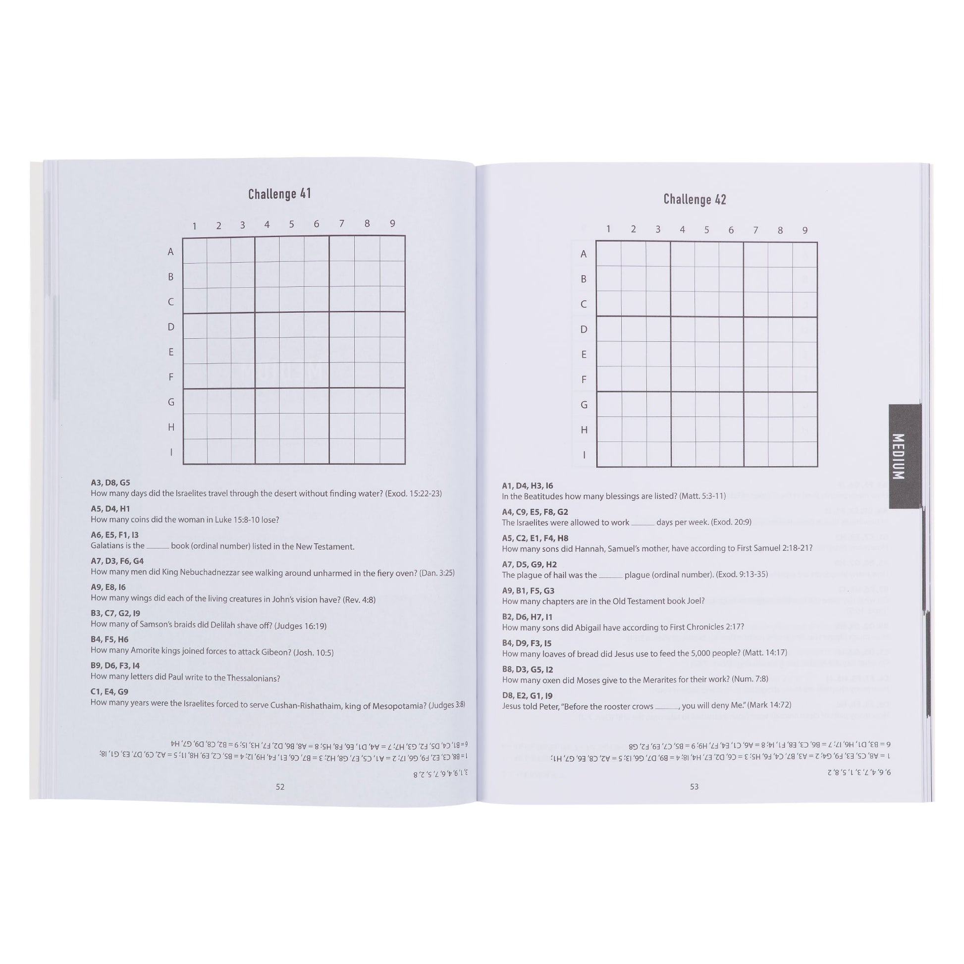 The interior pages are white and printed in black. The book features 100 sudoku problems to solve. Clues from the Bible make puzzles easily solvable for beginners, while sudoku masters will find their skills challenged with tricky brain teasers. Answers to all puzzles are also included.