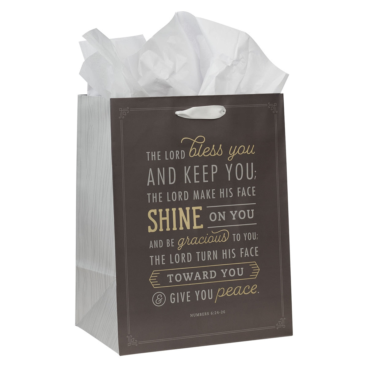 Bless You and Keep You Black and Gold Large Portrait Gift Bag with Card - Numbers 6:24-26