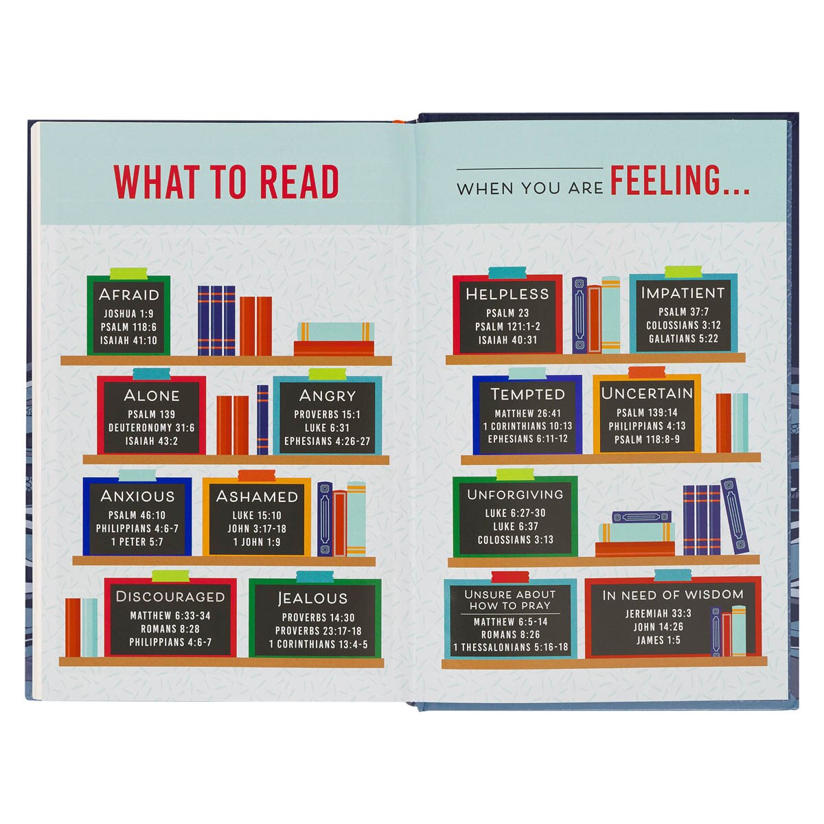 40 engaging full-color pages placed throughout the KJV text provide an enriching study experience, inspiring young readers to explore the stories on a deeper level and form meaningful connections with the characters and locations they encounter. Additionally, this Bible offers valuable tools for further study, including an index featuring 24 carefully selected Bible memory verses, a thematic Scripture verse index organized by theme, and a vividly illustrated map of the Promised Land. These resources empower young readers to deepen their understanding and forge a strong connection to the Word of God.