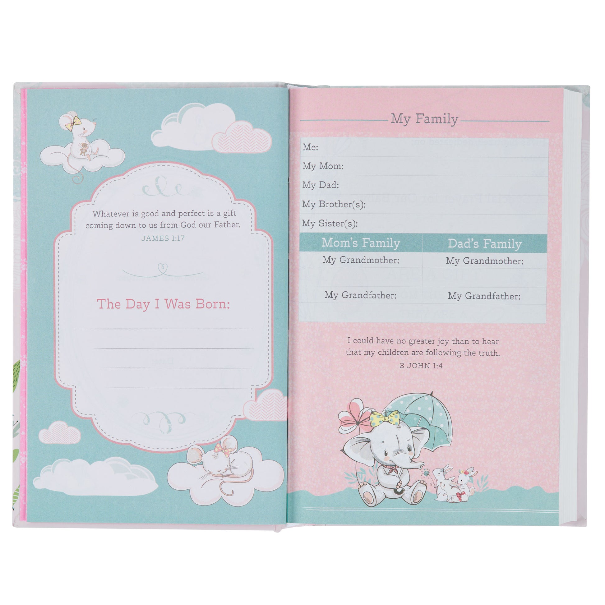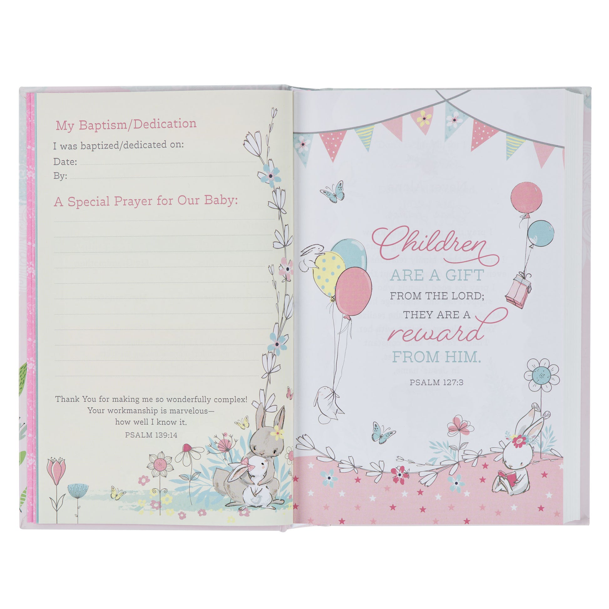 This keepsake Bible uses the entire NLT text, a translation that is written in a modern, easy-to-understand language. In addition, 32 charming full-color pages are illustrated with beloved hymns, heartfelt prayers, and memorable Bible verses. Brimming with charm, these pages will delight your daughter when she is old enough to read.