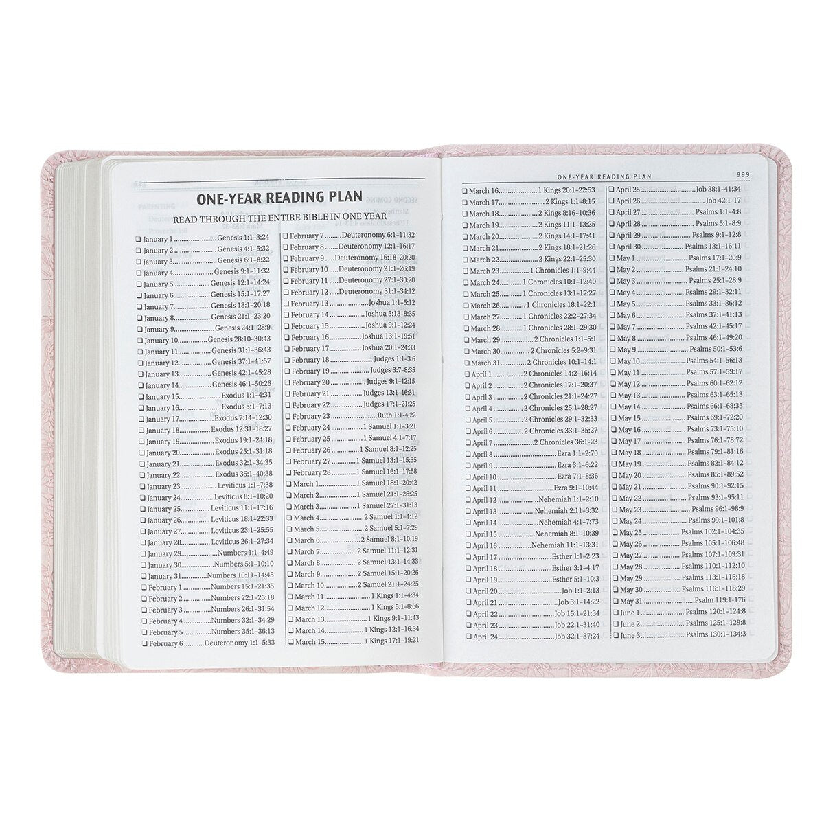 Though compact in size, this pocket Bible for women features a 6-point typeface that includes every word of the complete King James Version text. Study tools include a dual-column layout, red-lettered words of Christ, a topical verse finder, easy-to-follow subheadings, eight full-color maps, and a one-year Bible reading plan to encourage consistency and growth.