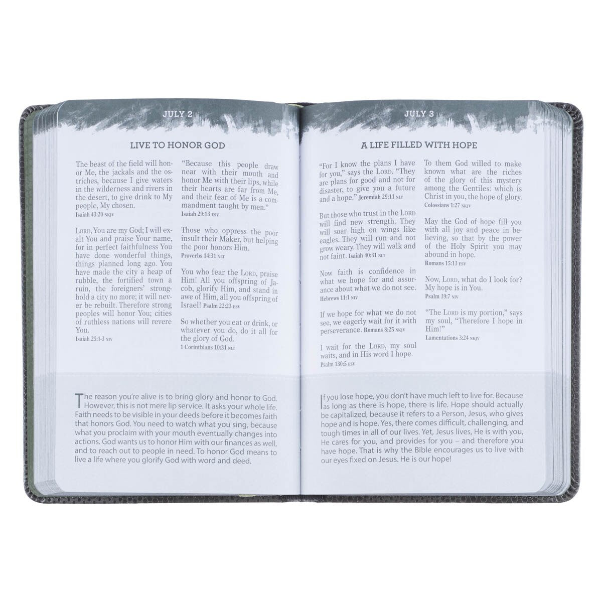 Start each day by reading a selection of Bible verses and their practical application before running to school or hanging out with family and friends. The convenient size of the pocket Bible allows it to travel in a backpack, and since you can reach it easily, you can share the good news with friends for encouragement and guidance.