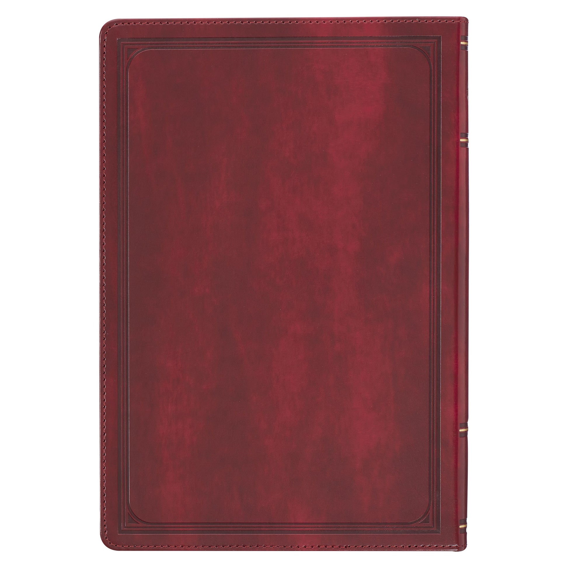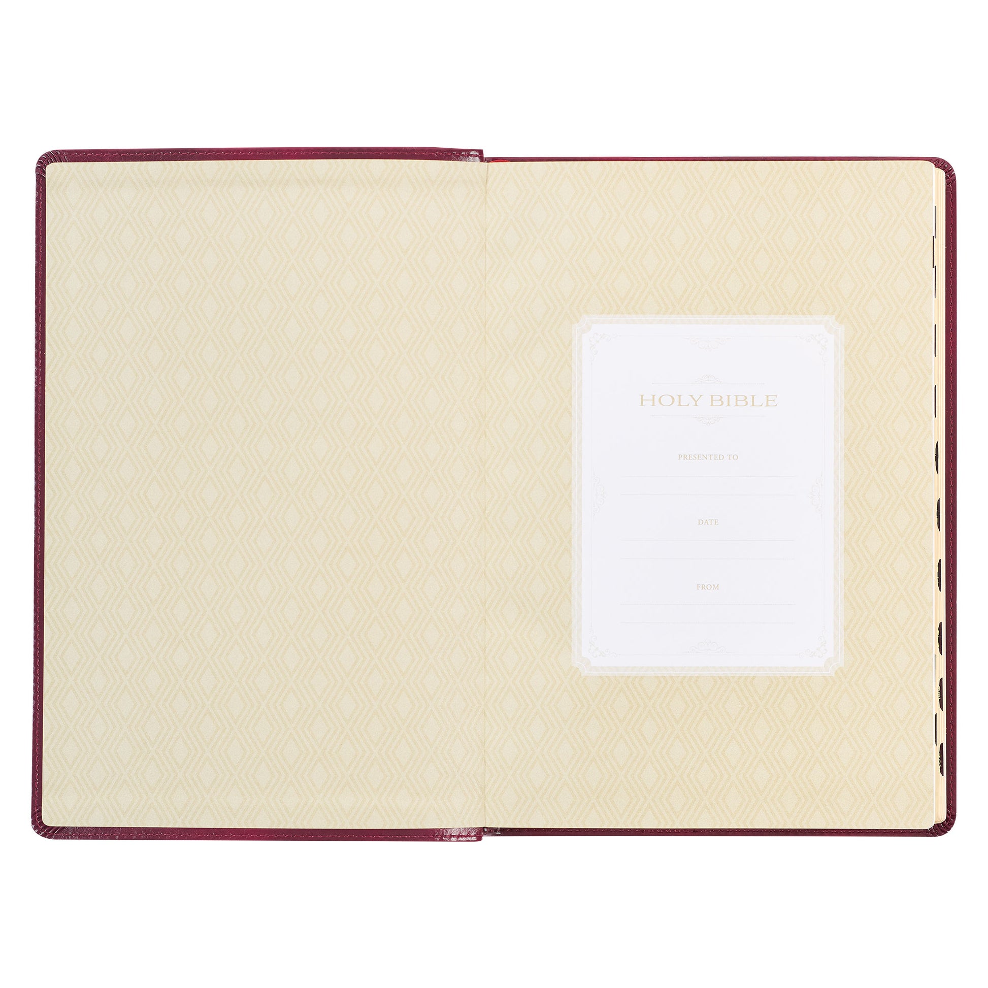 The Burgundy Cross Faux Leather Large Print Thinline King James Version Bible with Thumb Index presents the Classic King James Version text in a lightweight modern thinline binding that rests perfectly in your hand.