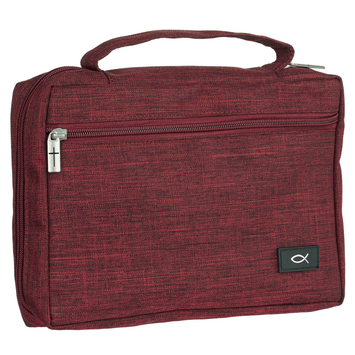 Protect your Bible with the Cranberry Red Poly-canvas Value Bible Cover with Ichthus Patch. This low-cost but durable Bible case is all you need to keep your most prized possession safe from daily wear and tear.