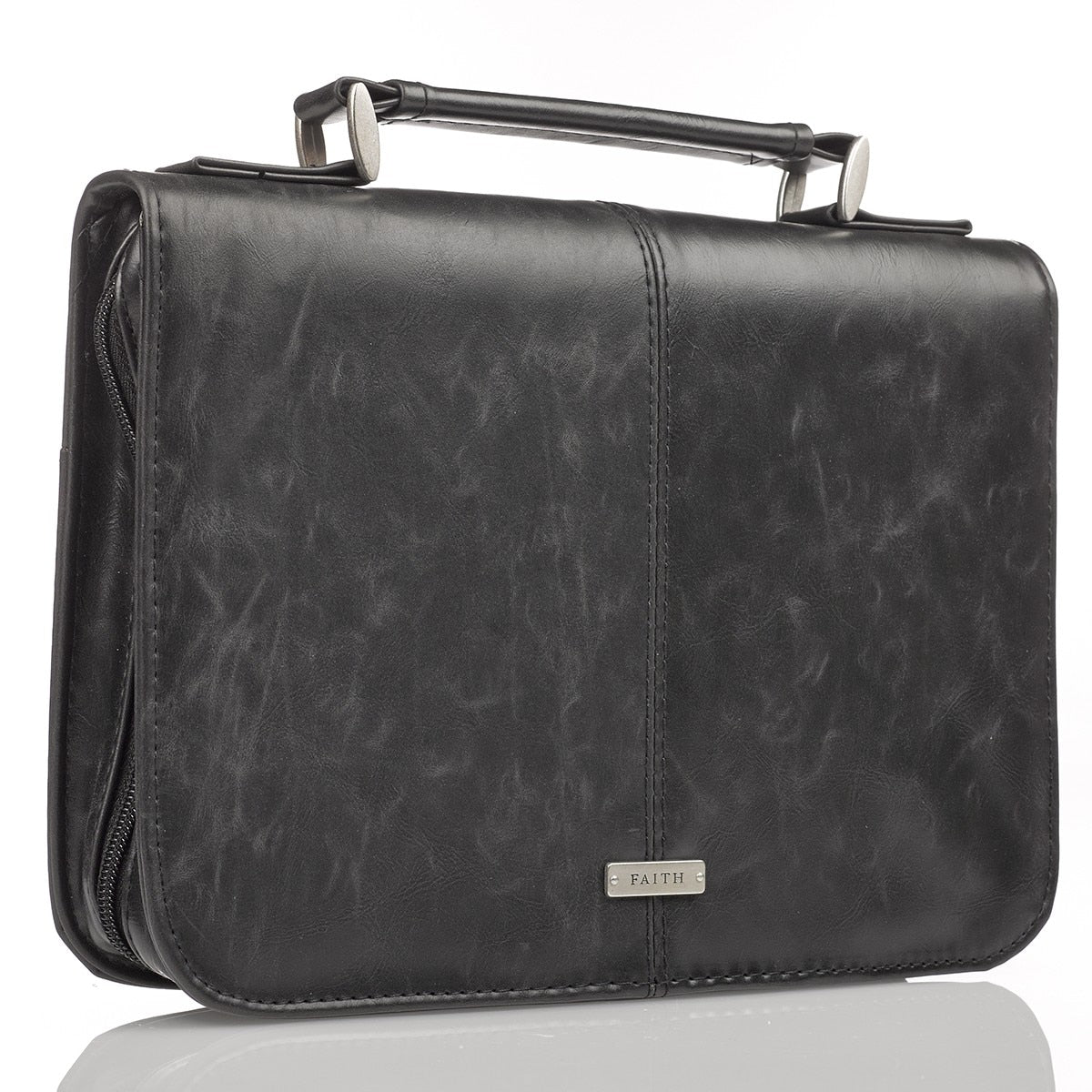 The classically handsome with a simplistic style, the Faith Black Faux Leather Classic Bible Cover, will appeal to anyone who loves the rich look and feel of real leather but with the price point that is affordable.