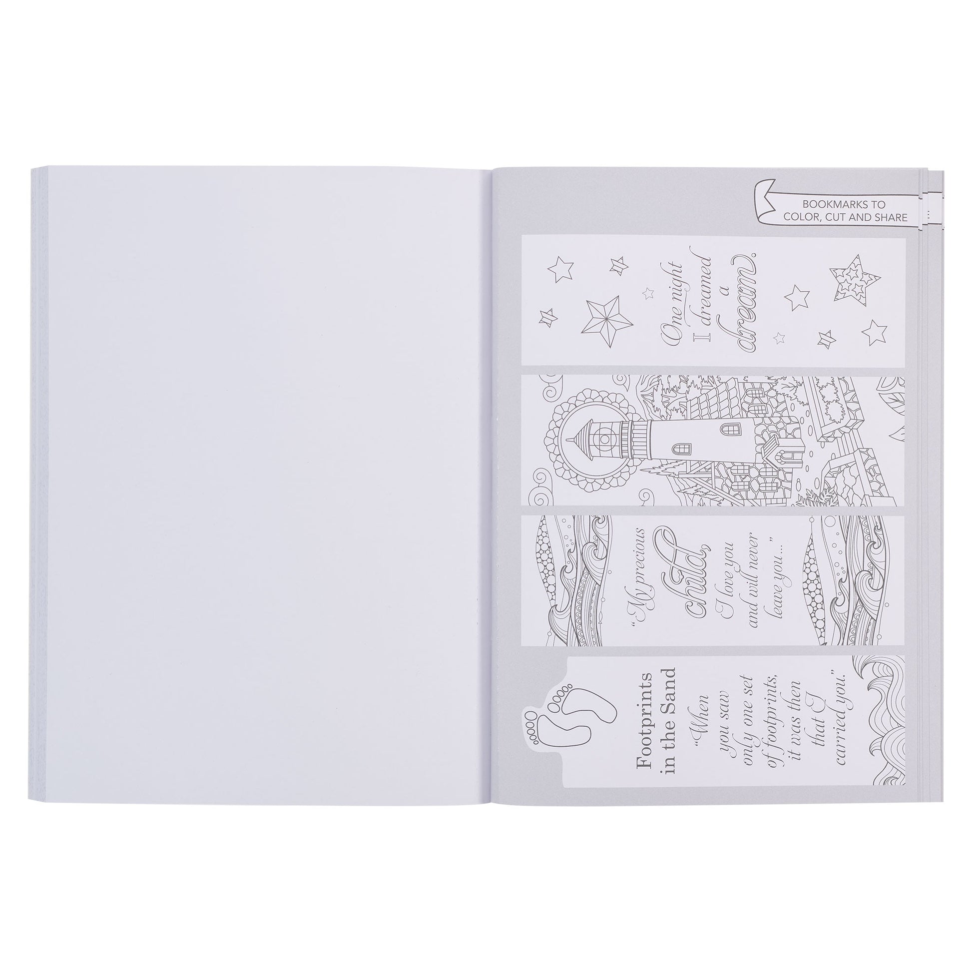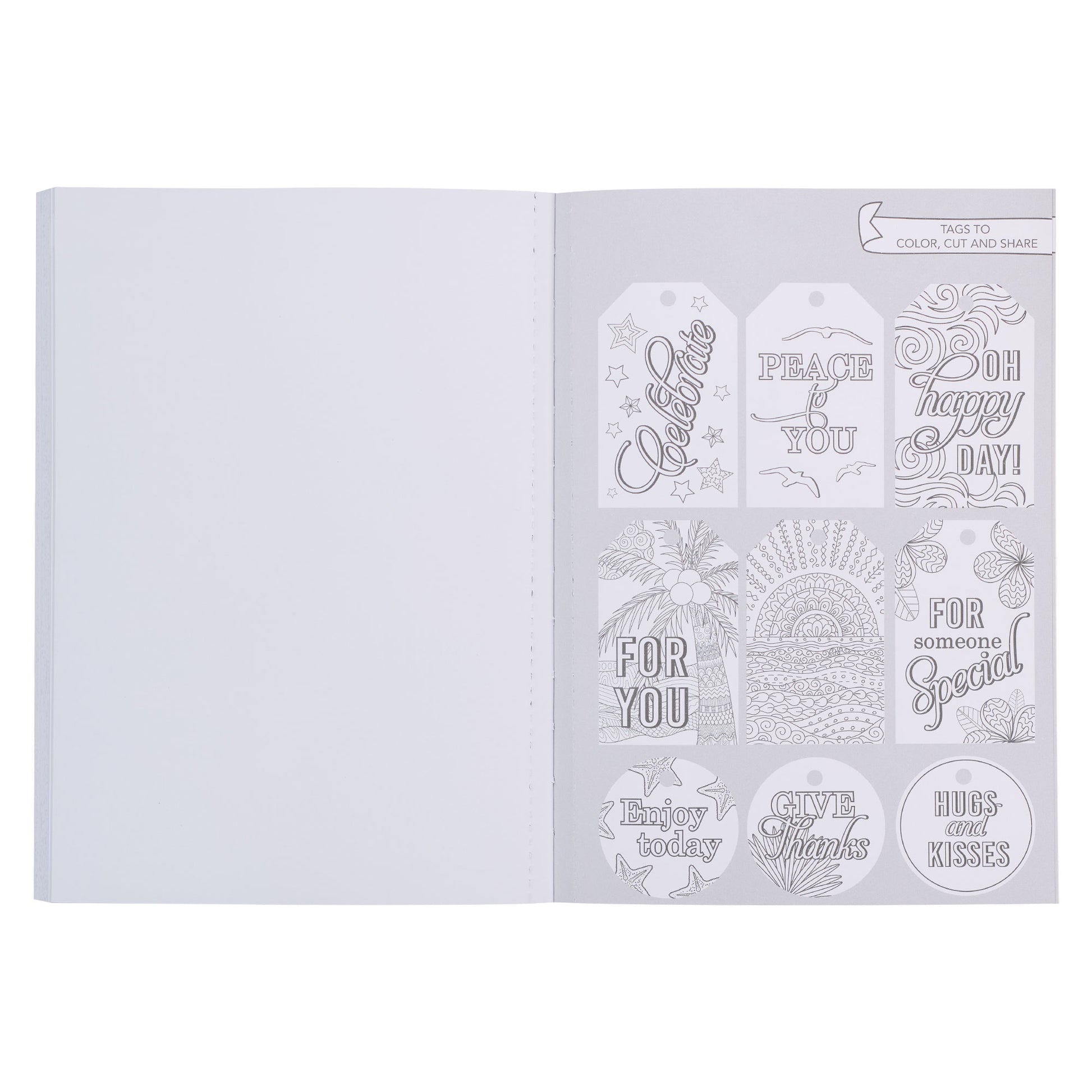 The pages include Scripture verses and quotes from the poem, all designed around a coastal beach theme. 52 perforated pages offer a line drawing on one side of the page. The perforated pages can easily be removed, framed, or displayed on the refrigerator for inspiration. In addition to 40 full-page images, there are 12 bookmark-sized images, 15 cards, and 18 gift tags that can be colored.