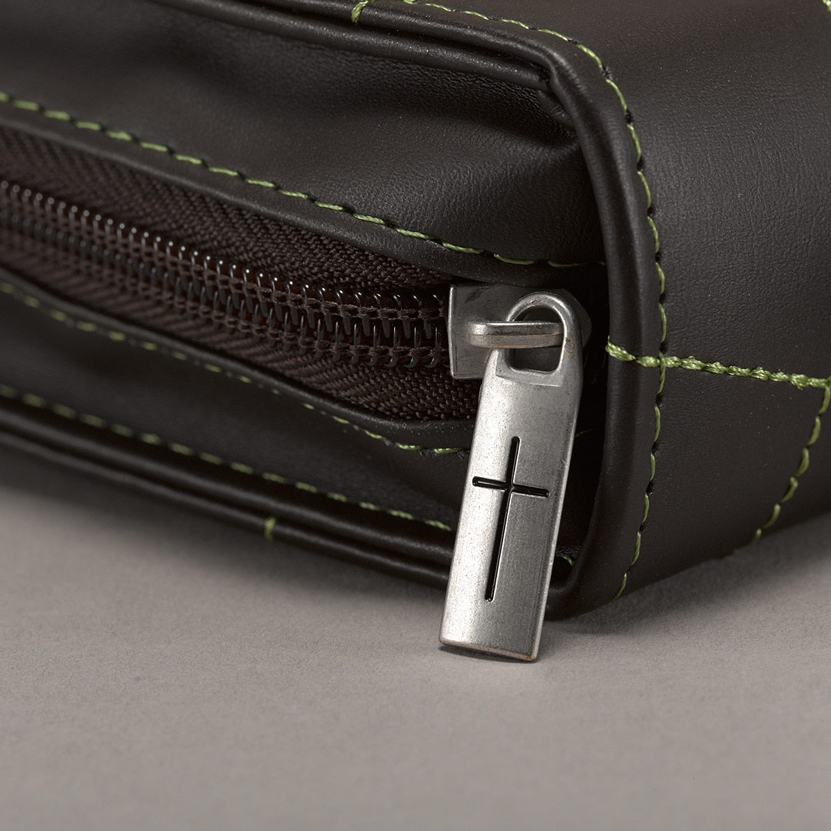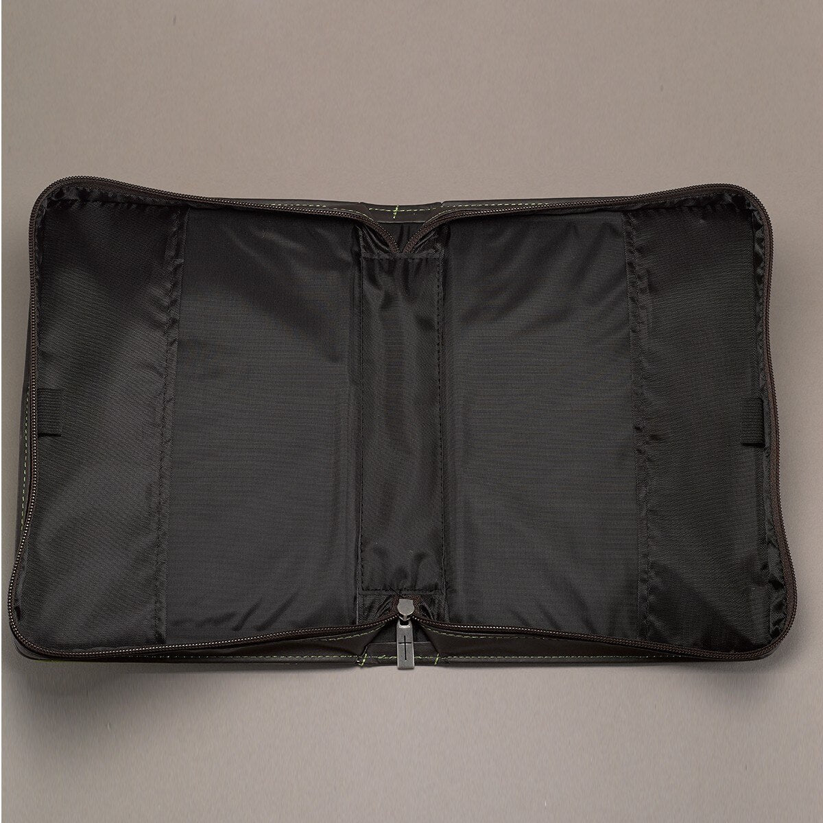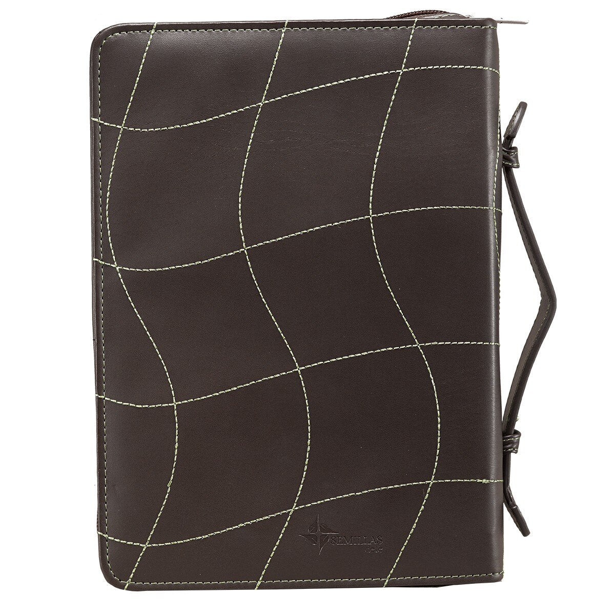 Esta funda con tonos verdes fuertes está fabricada con materiales de alta calidad importados de Italia y tiene la textura y apariencia de cuero real. Tiene un cierre exterior con un tirador de cremallera grabado con una cruz y una manija plana estilo maleta. Hay dos lazos para bolígrafos en el interior.Esta funda para Biblias está disponible en dos tamaños: mediano y grande. Por favor consulte la última imagen disponible en el mostrador para verificar las medidas de los diferentes tamaños antes de hacer su selección.