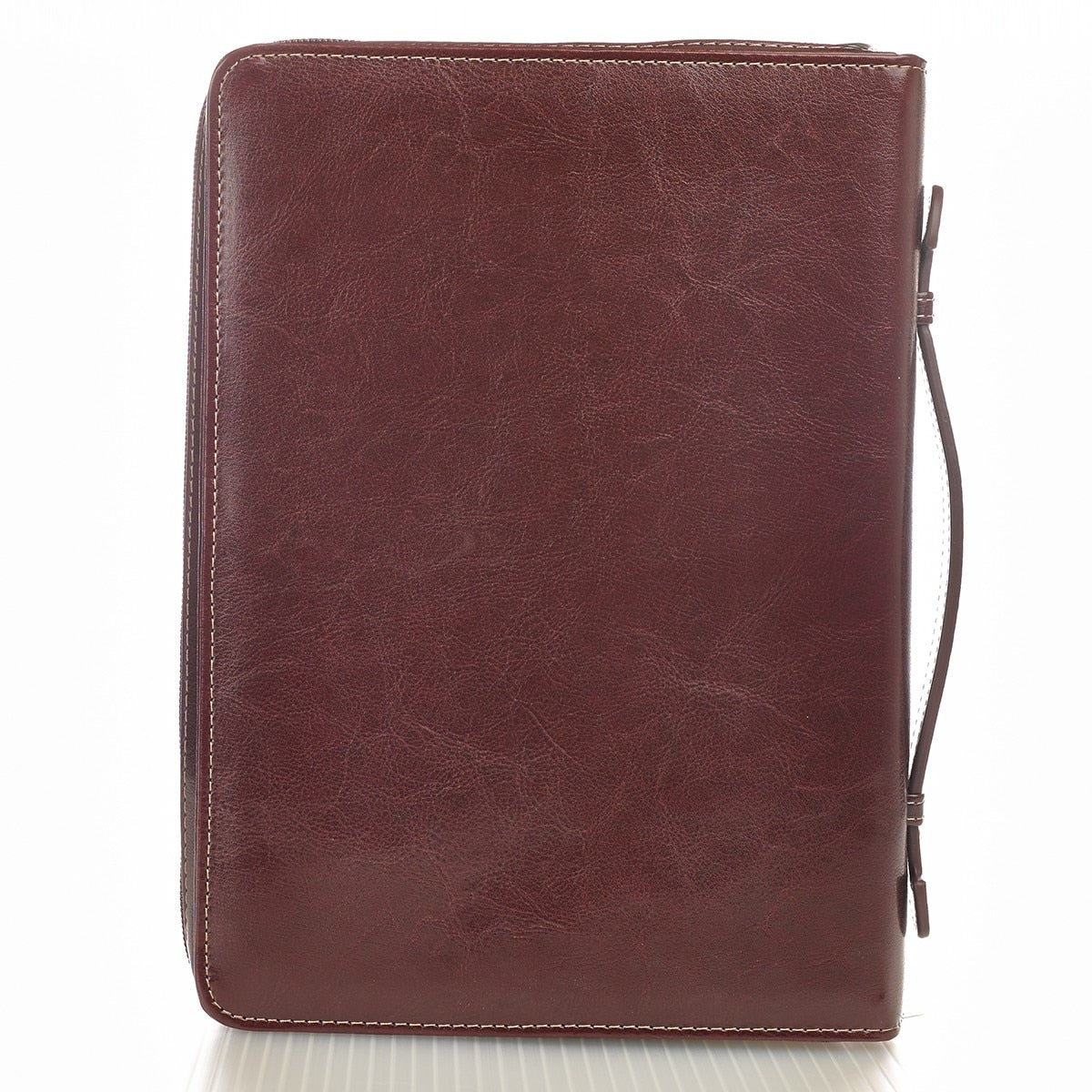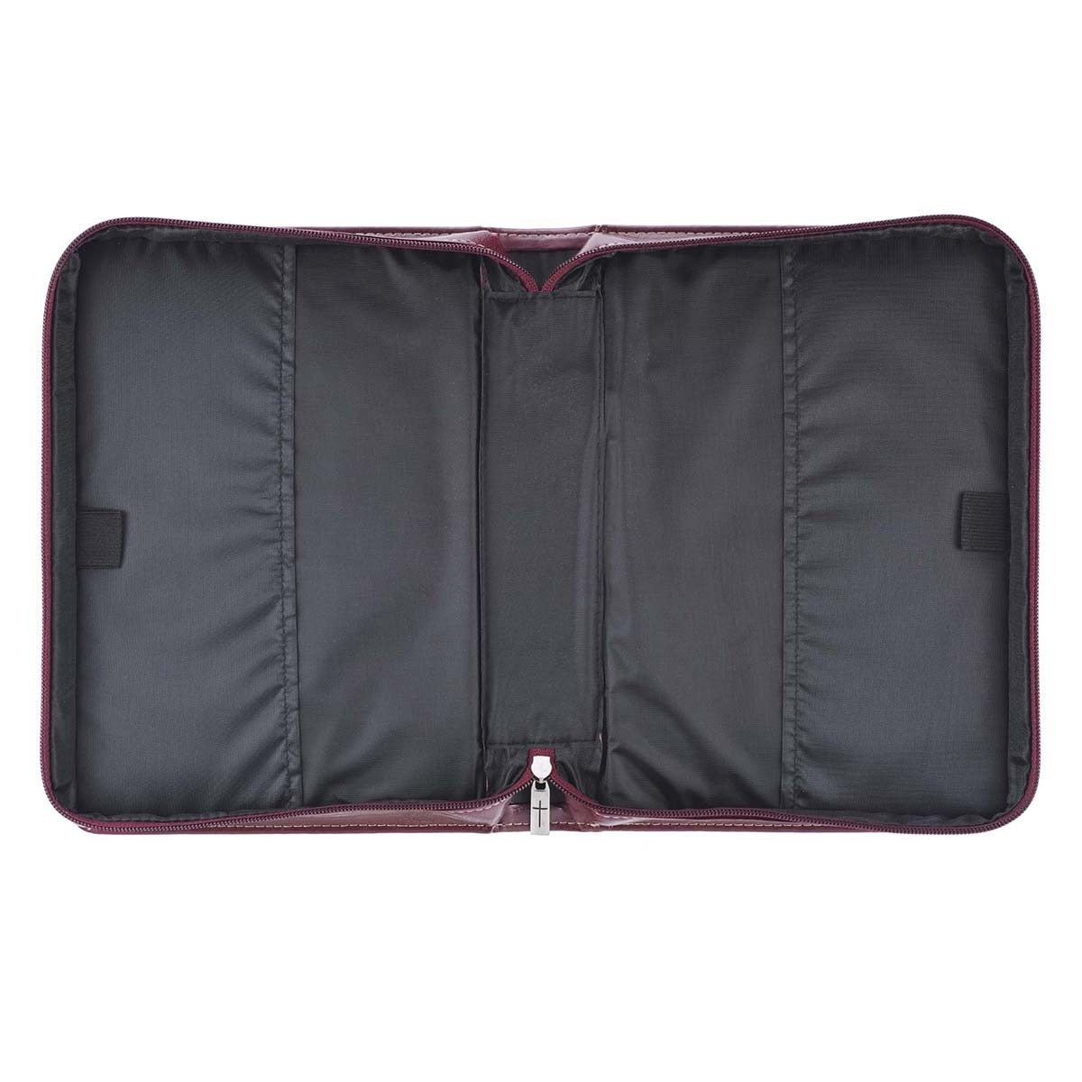 Esta funda está formada por dos tonos de color café y color arena del mar. Un tirador de cremallera grabado con una cruz asegura el contenido de esta funda y el exterior presenta un bolsillo en la parte trasera para poder almacenar notas. Una manija especial en el lomo facilita el abrir en forma plana que asegura de que su Biblia permanezca abierta sin problemas. Esta funda también provee dos lazos para bolígrafos o lápices en su interior. Esta funda para Biblias está disponible en tres tamaños: mediano, grande y extra grande. Por favor consulte la última imagen del mostrador para verificar las medidas de los distintos tamaños antes de hacer su selección. El sentimiento detrás de la funda Yo sé los planes es de poder hacer de esta funda un buen regalo de graduaciones. También puede ser un regalo muy apropiado para alguien comenzando una nueva vida, trabajo, matrimonio o estudios de posgrado. Esta funda no sólo protegerá su Biblia sino también será un gran recordatorio de la providencia y provisión del Señor.- Dos tonos en cuero sintético