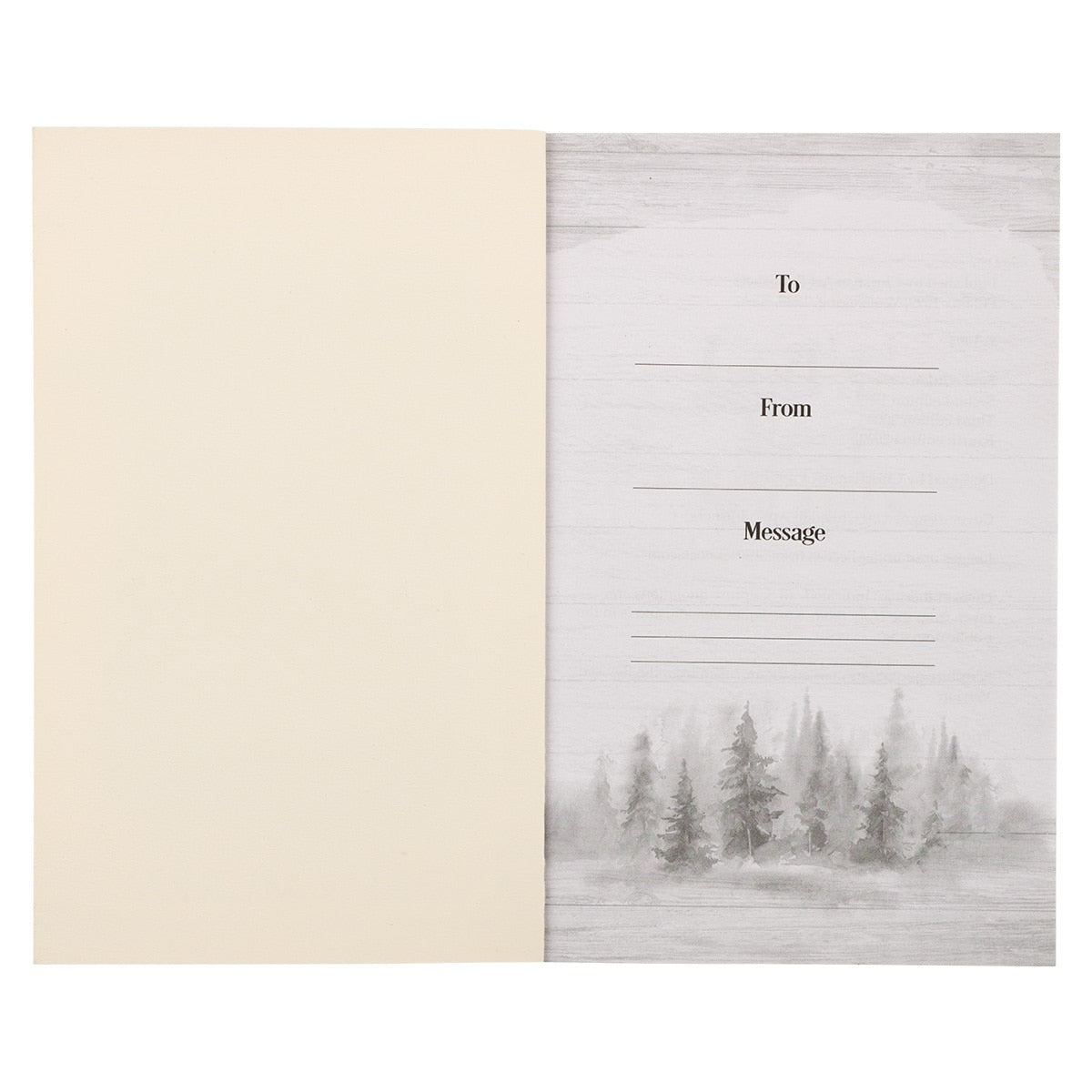 The white paperback cover of this devotional features a snowy scene with a bright green pine forest in the distance. The title is resented in icy blue-foiled letters.