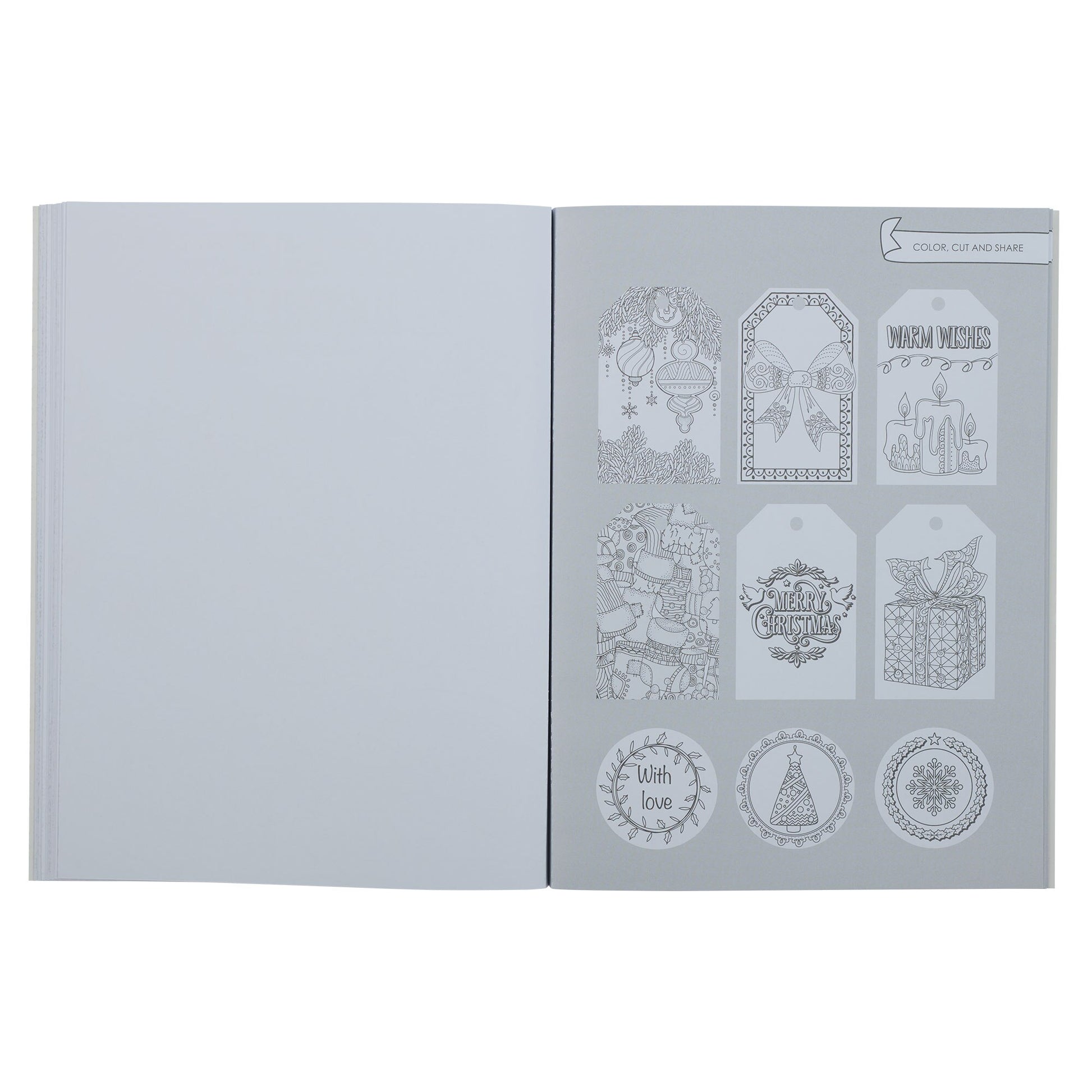 The coloring book pages are perforated to make them easy to remove. The fun starts at the very first page —a presentation page that can be colored and personalized. The coloring book further contains 50 Christmas-themed line-drawn illustrations to color. Each illustration is paired with a Christmas-themed Scripture verse to color as you meditate on its meaning. Additional pages feature a variety of cards and gift tags you can color, cut out, and share. There are 18 gift cards, 5 mini cards, 4 midi cards, 24 advent cards, 13 table placement cards, and 21 Christmas tree decorations ready for you to color and cut out