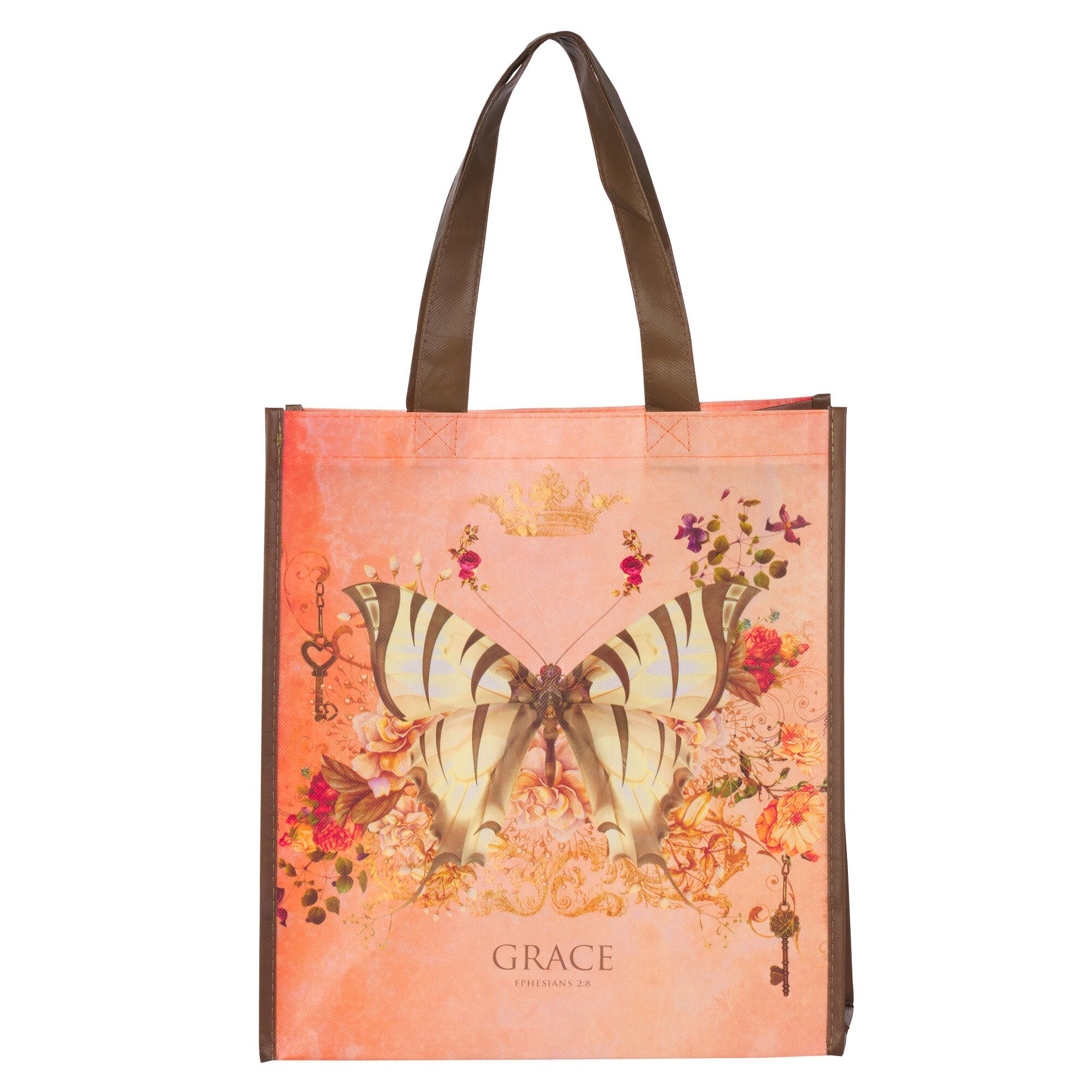 All you need is grace! The Grace Butterfly Orange Non-Woven Coated Tote Bag will carry anything you need throughout your day while reminding you that God's grace will get you through it.