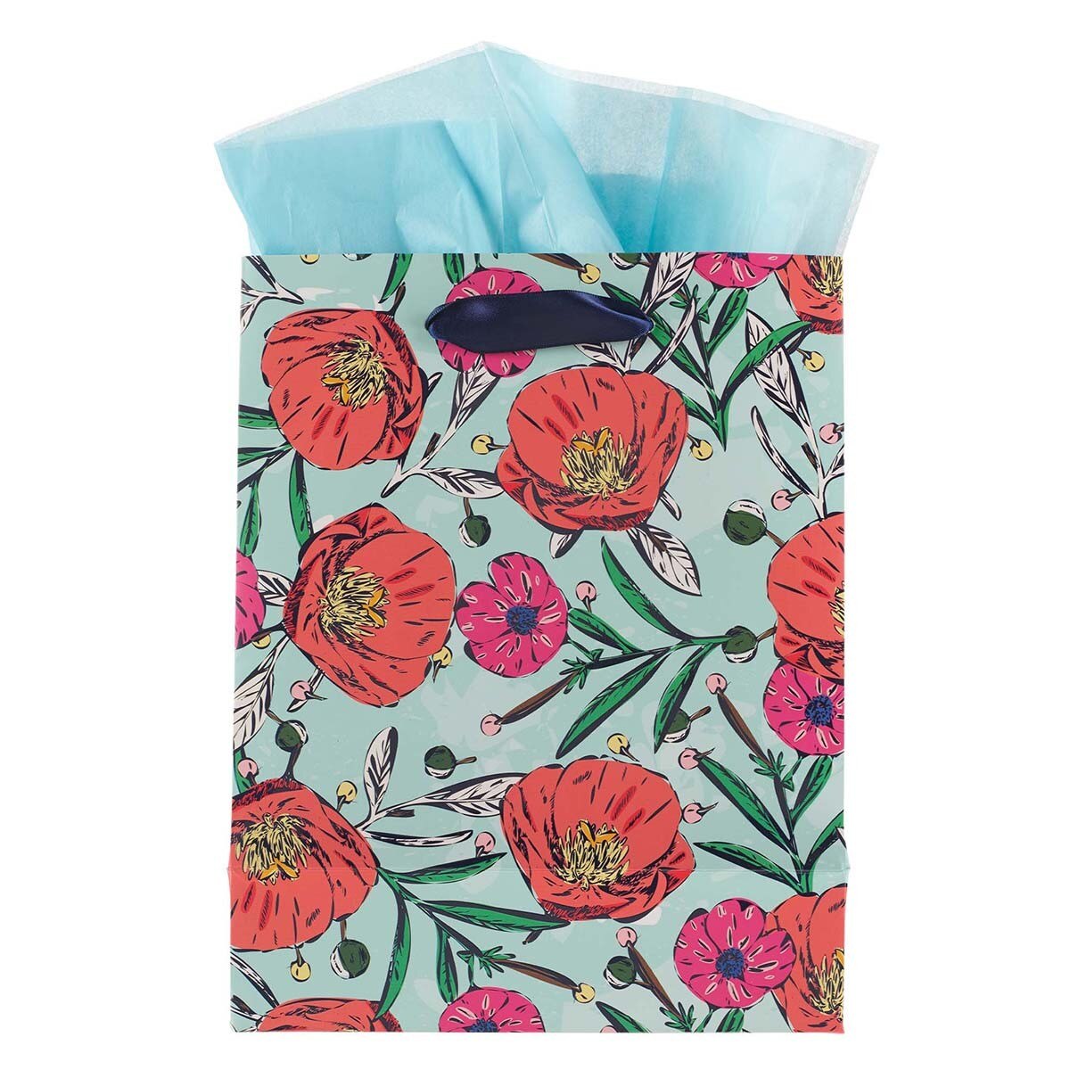 Brighten a friend’s day by giving them a gift packaged in the colorful His Grace is Sufficient Medium Gift Bag. The words on this bag declare the everlasting truth of God’s abundant and freely given grace. Let this verse be an uplifting message for the person who receives this gift. Vibrant orange and pink flower blossoms are displayed in a random arrangement on this medium-sized gift bag. The sentiment—an adaptation of a well-known verse—lies in the center, with the blossoms and leaves scattered around it in scripted lettering, foiled in sapphire blue.