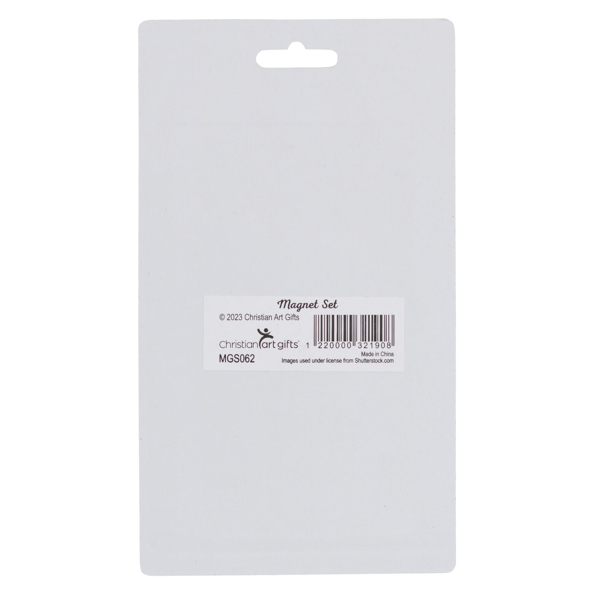 The Hope and Trust Floral Assorted Magnet Set is part of the Hope and Trust Floral Collection that features two complementary designs: one in Mediterranean blue and the other in pomegranate red. Each design features a Scripture verse that is applied to ceramic mugs, wirebound journals, and Bible cases. The verses are combined and applied to a notebook set and a ceramic mug set.