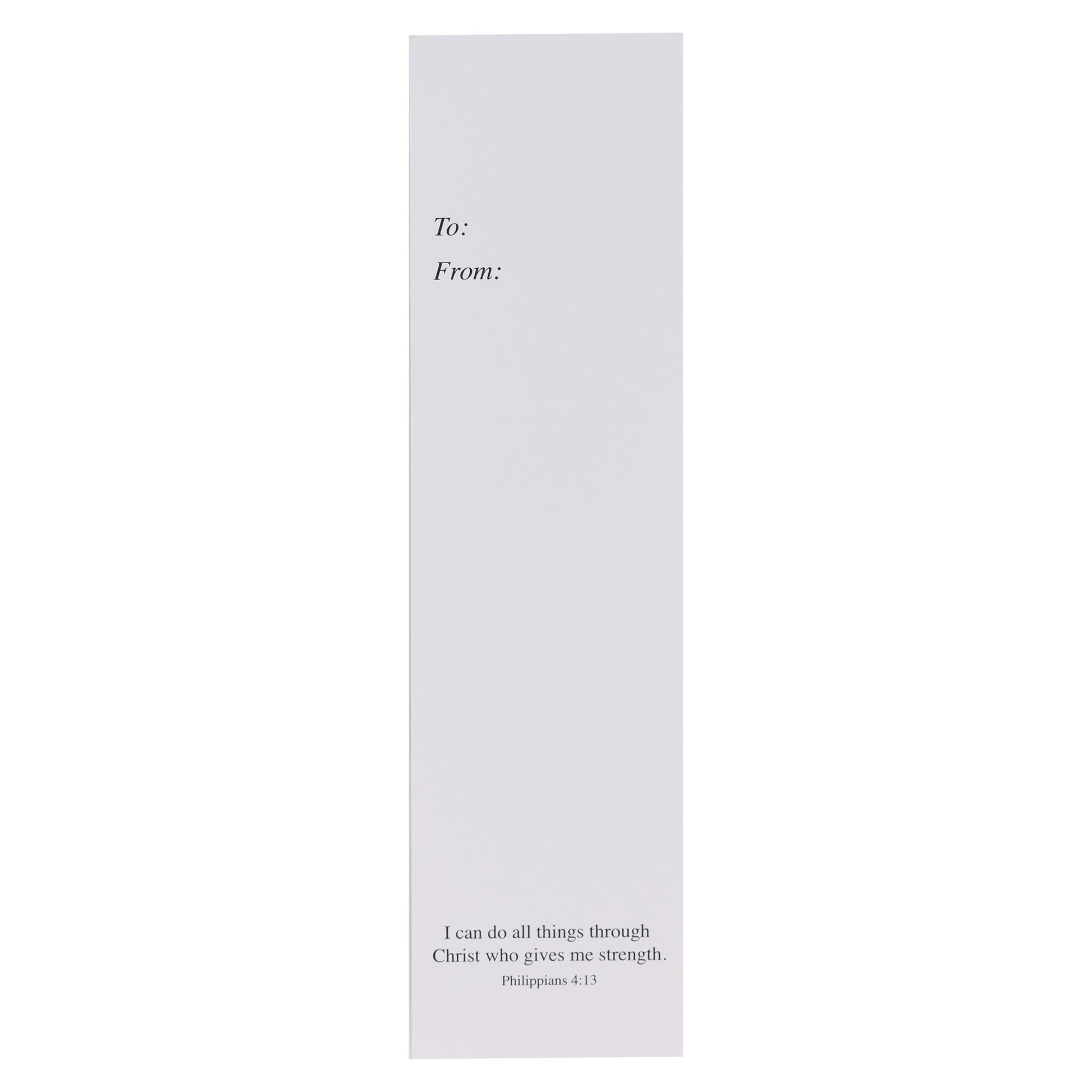 With 10 identical bookmarks in a set, you will have enough to pass out to your entire class. And with space on the back for personalization, you can write a note of encouragement or add a child's name to make each bookmark feel special. The Scripture verse is also repeated on the back in small black print.
