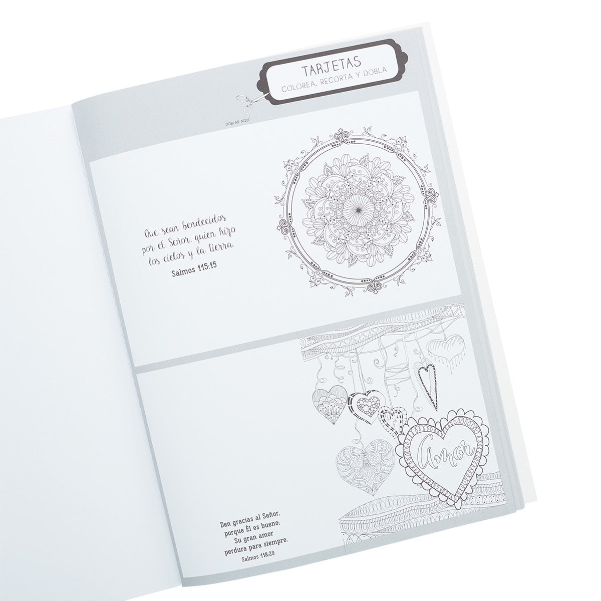 El bellamente elaborado Libro para Colorear Salmos en Color presenta el libro de los Salmos con versículos seleccionados que se transforman en hermosas imágenes que puedes colorear. Patrones, diseños, motivos y dibujos a tinta encantadores te invitan a regocijarte en estos cantos de alabanza mientras agregas tu toque único de color. Crea tu propia obra de arte al dar vida a estos queridos versículos.