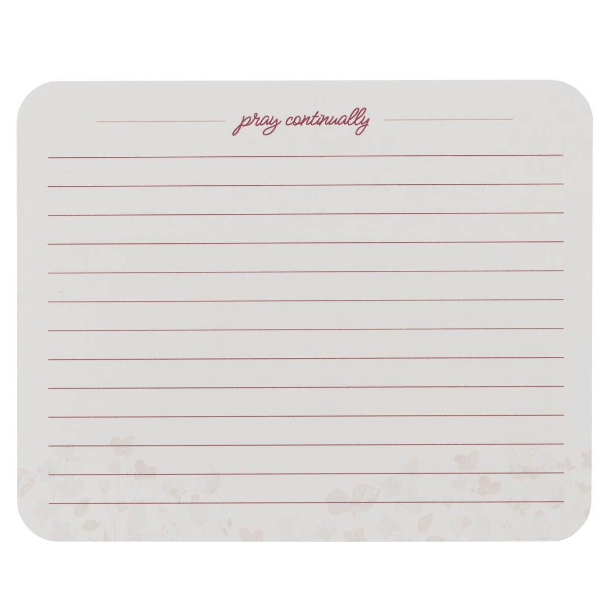 The tin holds 50 double-sided lilac-colored laminated cards. Each card is decorated with a tone-on-tone lilac wildflower design. Prayer is featured on the front of each card, and lined space on the back allows you to add a note or your own prayer.