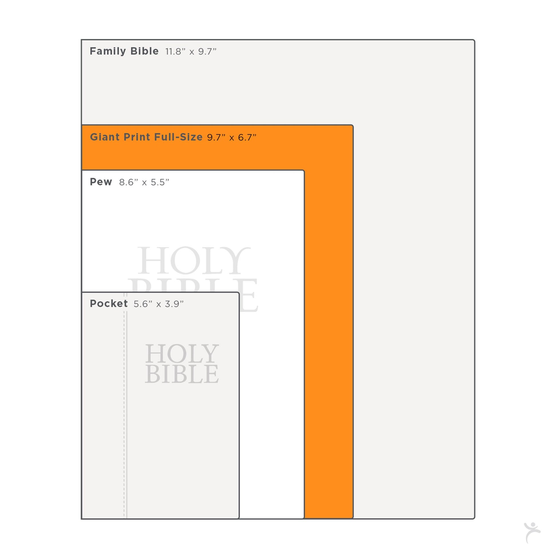 Helpful Bible study tools include a one-year Bible reading plan, a thematic Scripture verse finder, 8 full-color maps, and the words of Christ highlighted in red ink. The KJV text is presented in a double-column format in a giant 14-point type, making reading easy and lessening the strain on the eyes. The original 1683 English text is used, so expect slight variations of modern spelling, and the Bible is packaged in a full-color printed cardstock sleeve.