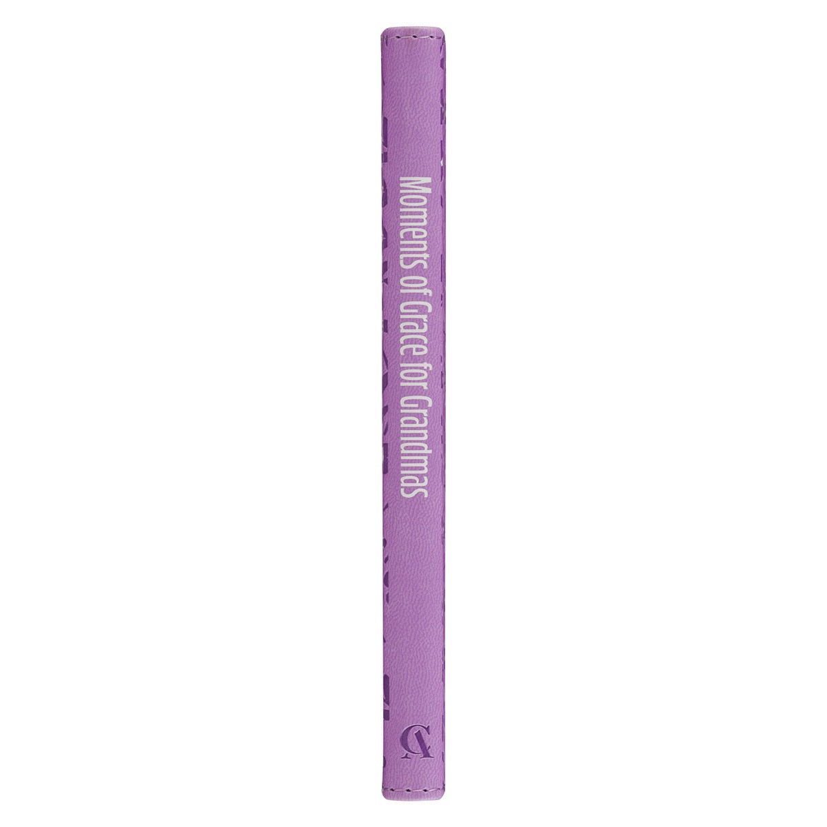 The book’s lilac purple cover is decorated with heat-debossed, friendly daisies. Its title pops with bold, white lettering held inside a beveled frame while a satin ribbon marker adds elegant flair. Moments of Grace for Grandmas brightens any bedside or coffee table.
