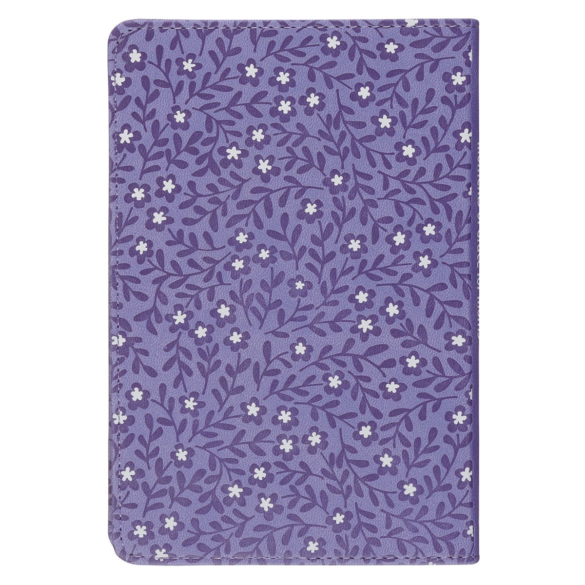 Gold gilt-edged pages add to the lovely design. Inside the book, purple font brightens the pages. Headings, quotes, prayers, and floral designs appear in periwinkle purple. The book's presentation page follows a similar design to the cover and makes a beautiful floral backdrop for a sweet note!