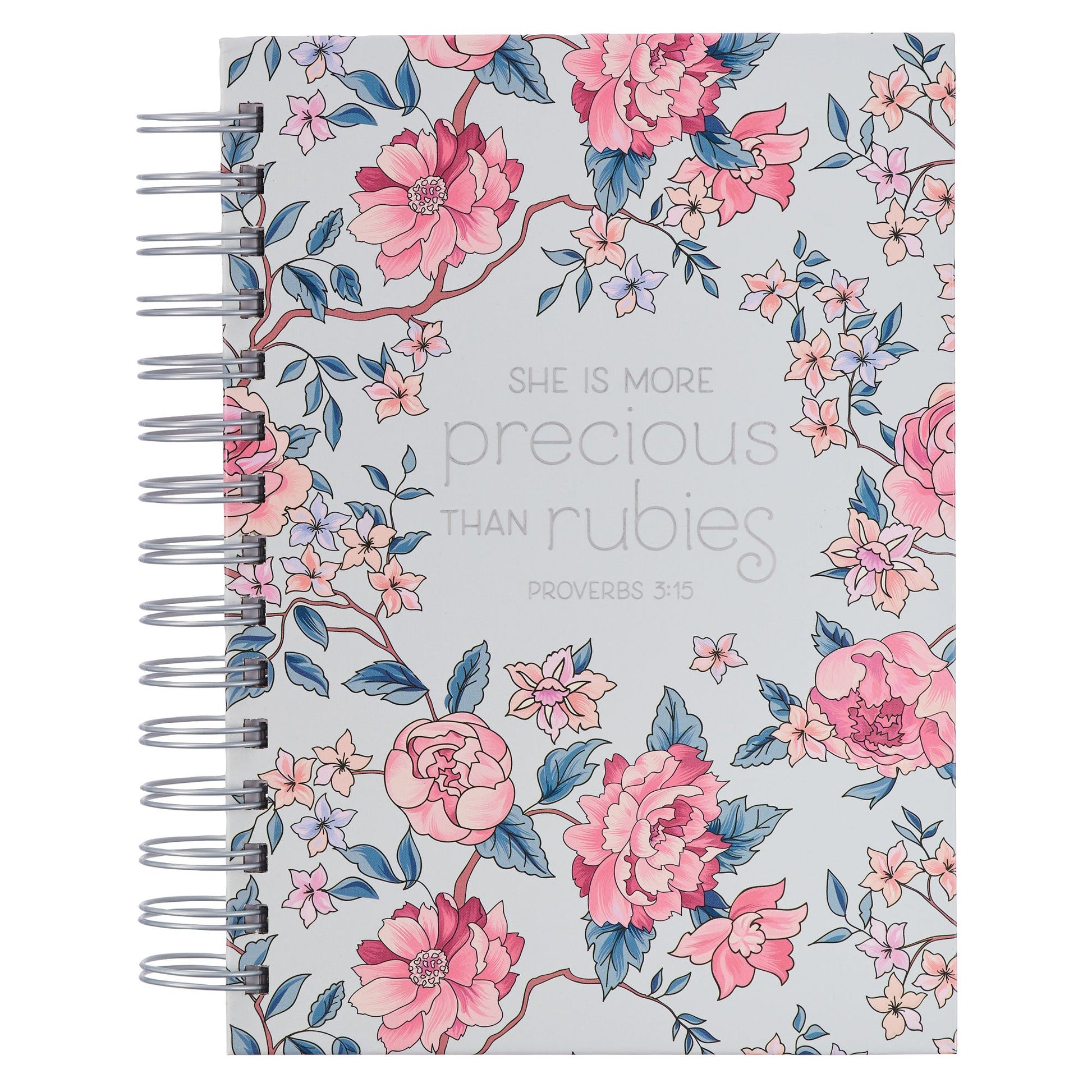 More Precious Than Rubies Pink Floral Wirebound Journal - Proverbs 5:13