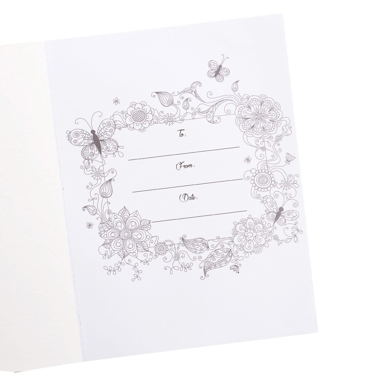 The book is bound in heavy-duty stock paper and features 64 one-sided perforated pages with 62 elegant and contemporary designs to color. At least 7 of these pages include smaller cards, bookmarks, and gift tags you can color, cut out, and give away.