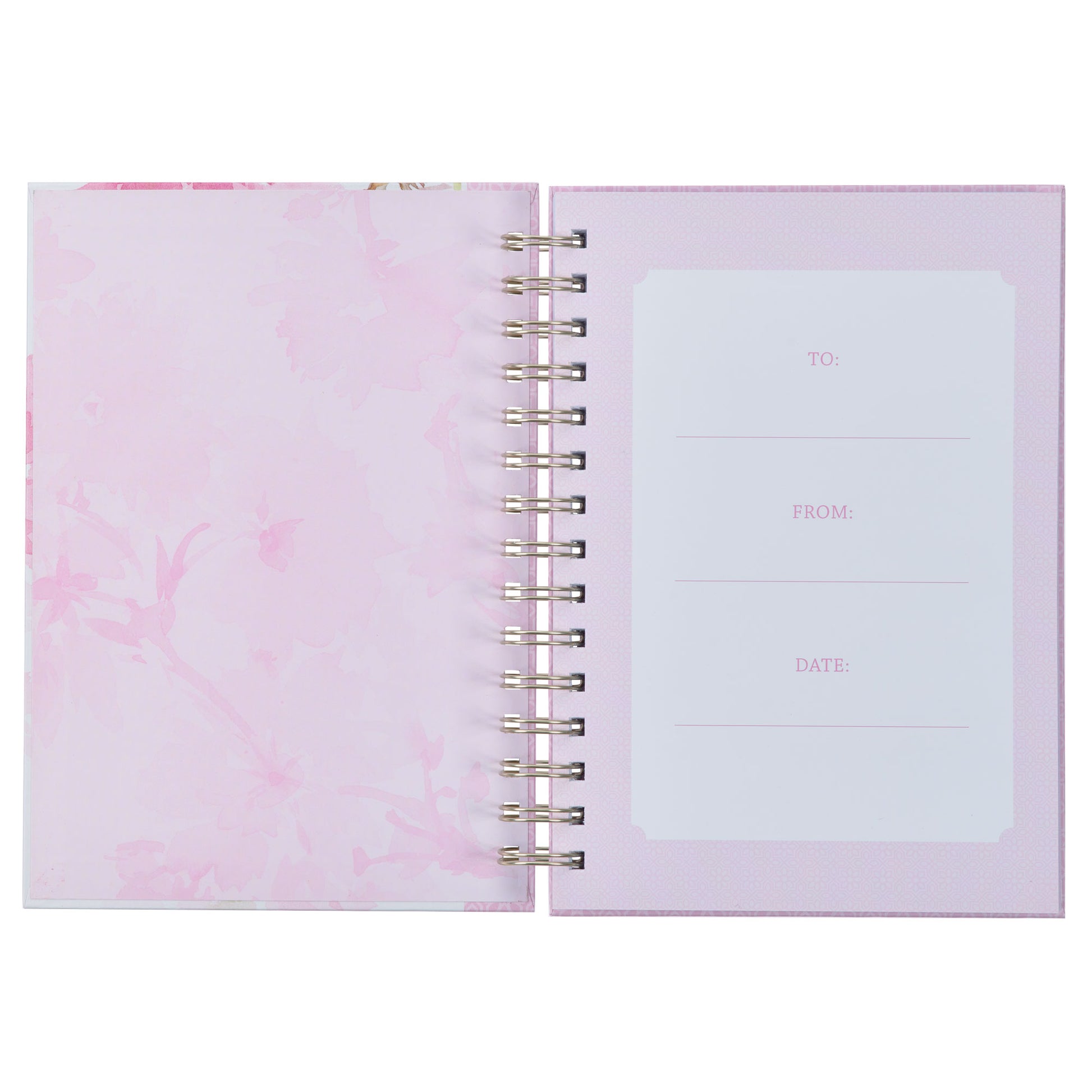 Within the pages of this wirebound journal, you'll find that each page is lined and adorned with a Scripture verse at the bottom. In addition, the front of the journal boasts a presentation page, allowing you to personalize or add a heartfelt message when presenting it as a gift.