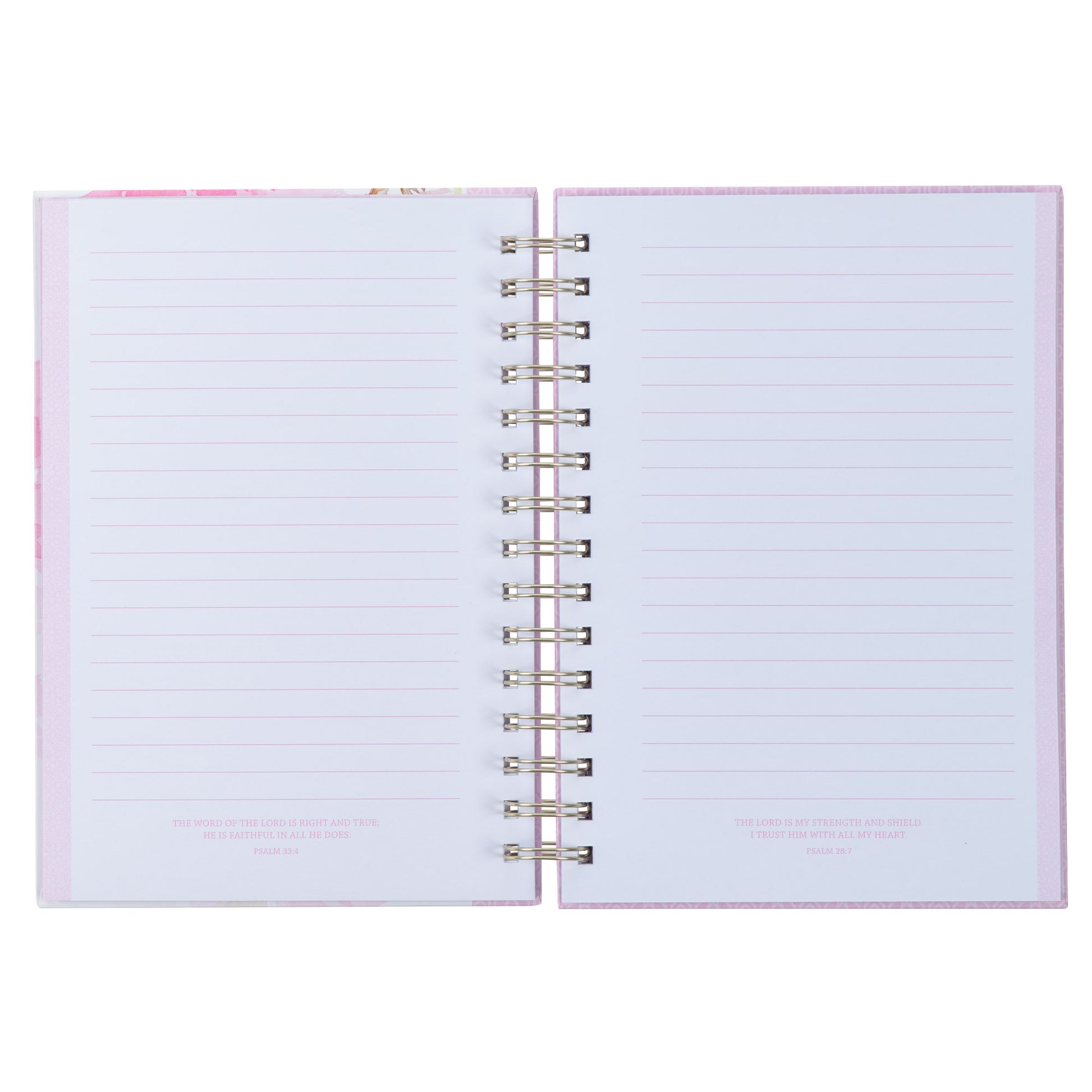 Pour your heart out to the LORD on the pages of the My Grace is Sufficient Pink Hummingbird Large Wirebound Journal, and find comfort in His promises. Just as the LORD cares for the delicate and frail hummingbird, He will also care for you. His strength is perfected in your weakness.
