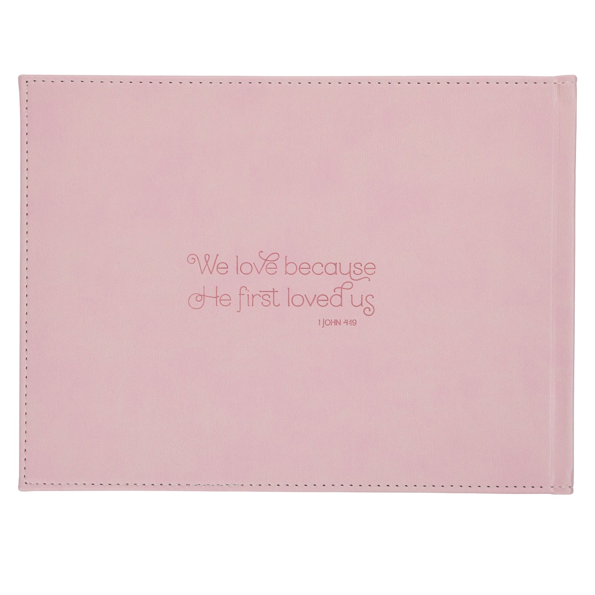 Pink Floral Mr. & Mrs. Medium Faux Leather Wedding Guest Book - 1 John 4:19