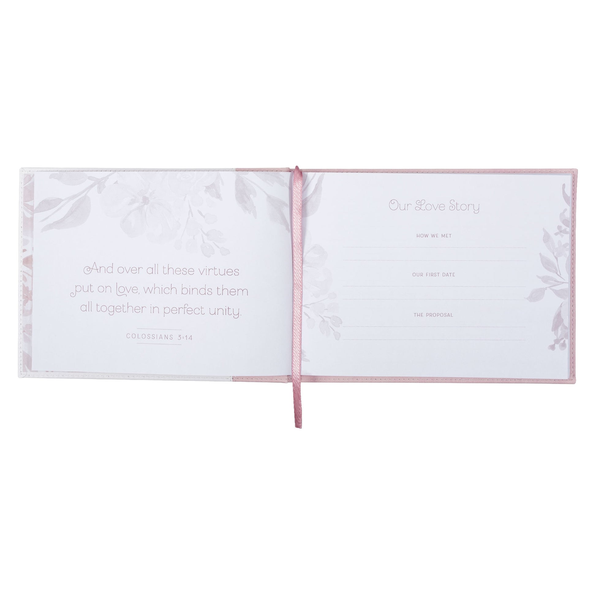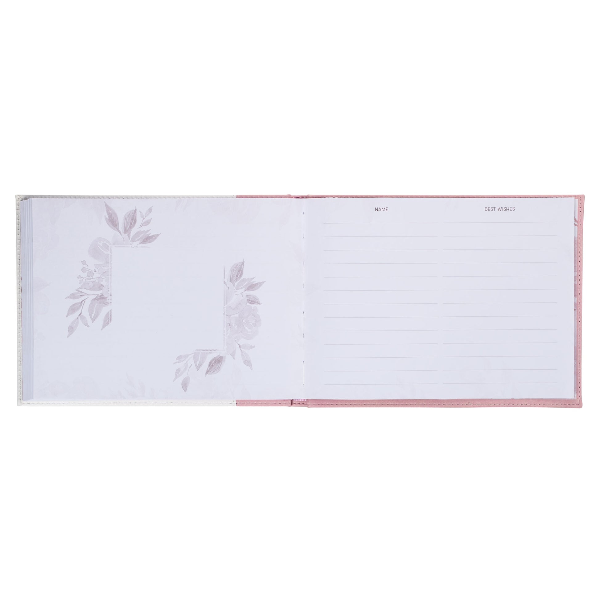 Inside, a monochromatic layout elegantly incorporates inspirational Scripture verses between the lined pages. To mark pages easily, a satin ribbon marker adds a touch of class. With 160 lined pages, there's ample space for guests to acknowledge their attendance and pen down special notes. For added convenience, this charming guest book is packaged in an acetate gift box, making it an ideal gift and ensuring its safe storage.