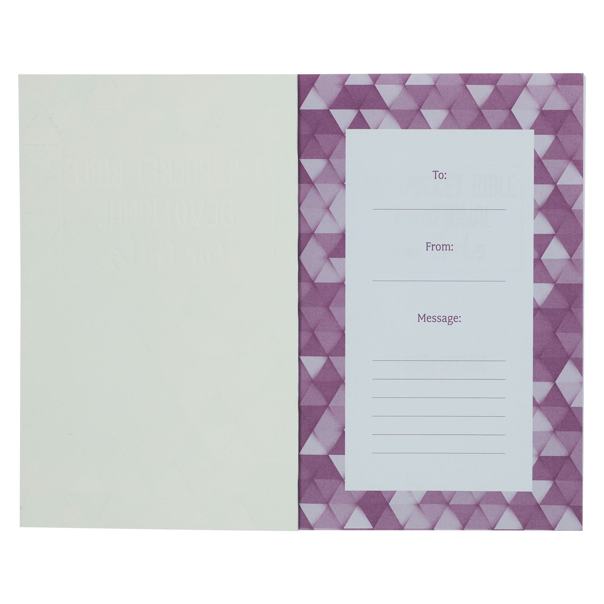 The Pocket Bible Devotional for Girls in Pink Paperback Edition will guide teen girls on their journey to becoming the women God designed them to be. Being a teen girl comes with its own set of unique questions, issues, and challenges. Fortunately, the LORD is always there to offer guidance. Keeping this small pocket Bible devotional in your backpack allows for quick reference whenever you feel unsure.