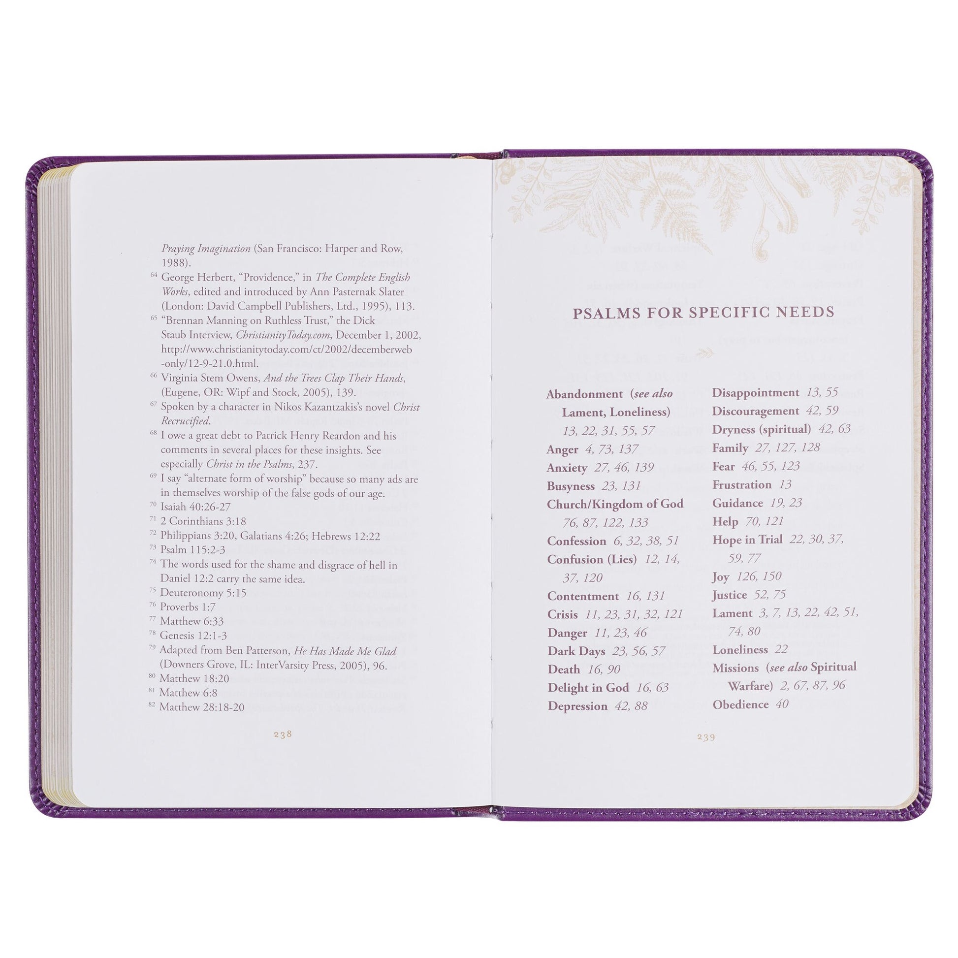 The Praying the Psalms Purple Faux Leather Prayer Book offers reflections on fifty passages from the Psalms. These scriptures hold songs of praise, cries for help, glad celebrations, and humble confessions that will renew your heart, transform your prayer life, and draw you closer to God.