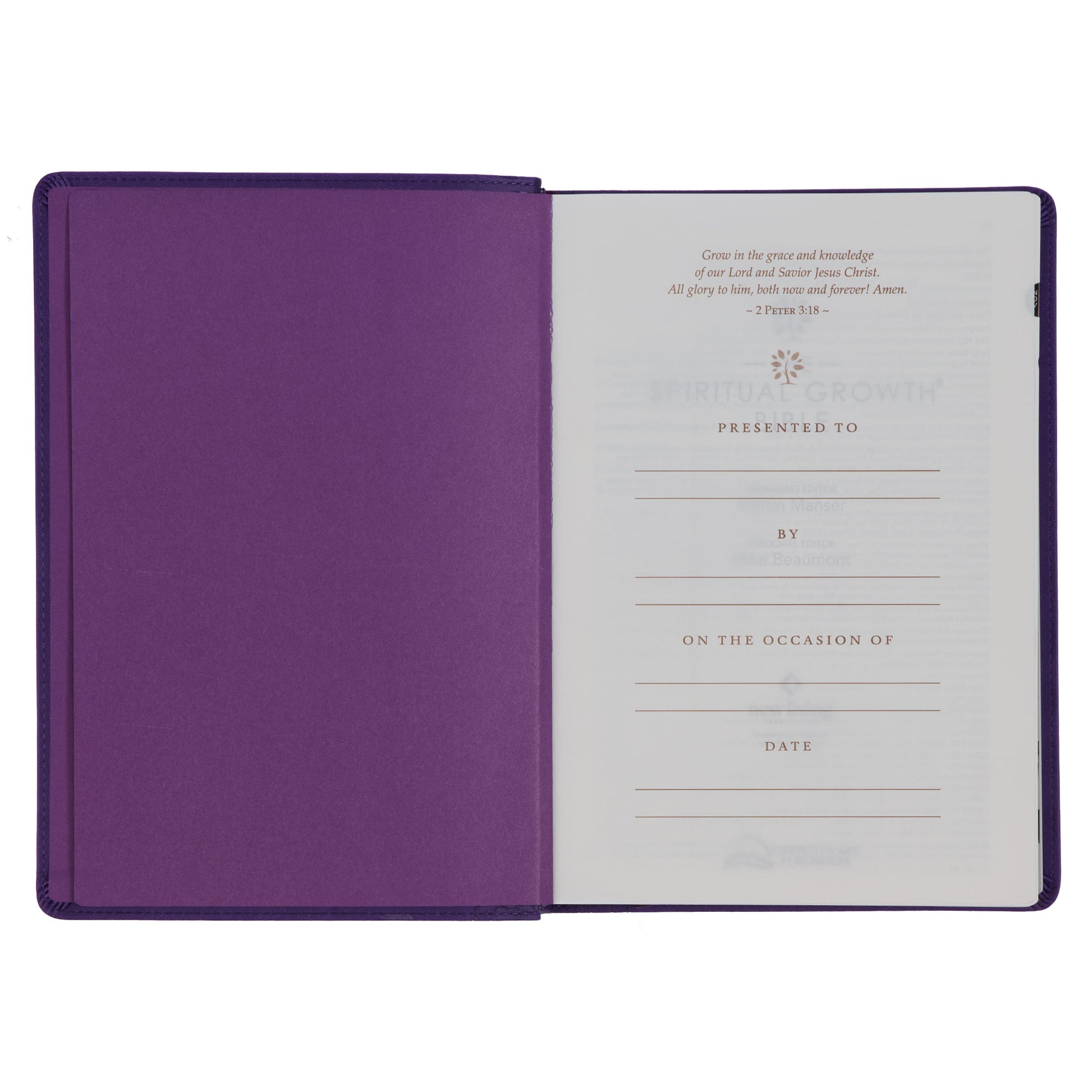 Share the privilege of studying God's Word with a beloved daughter or granddaughter when you wrap the Purple Faux Leather Spiritual Growth Bible as a birthday gift.