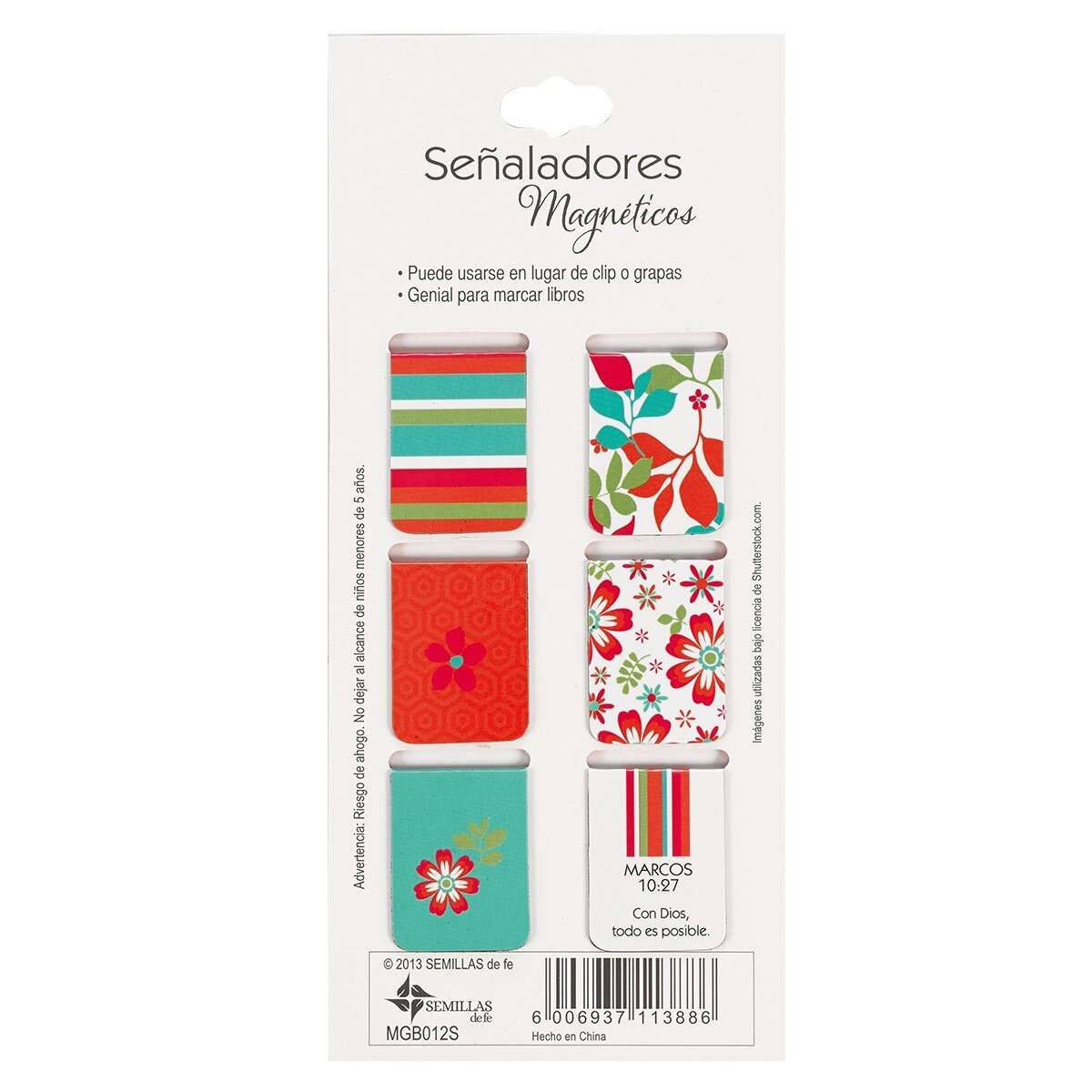 Marque su página con estilo con esta colección de seis separadores magnéticos con diseño floral y colores vivos. El diseño moderno es una mezcla de arte, hermosos gráficos, versículos de la Biblia y frases inspiradoras. Cada cartón tiene seis motivos diferentes que hacen juego, y hay tres cartones en cada paquete. Ideales para compartir con amigos, regalar en la clase de estudio bíblico, para poner uno en cada libro, etc. Económicos, prácticos y muy atractivos. Cada separador mide 20 x 54 mm.