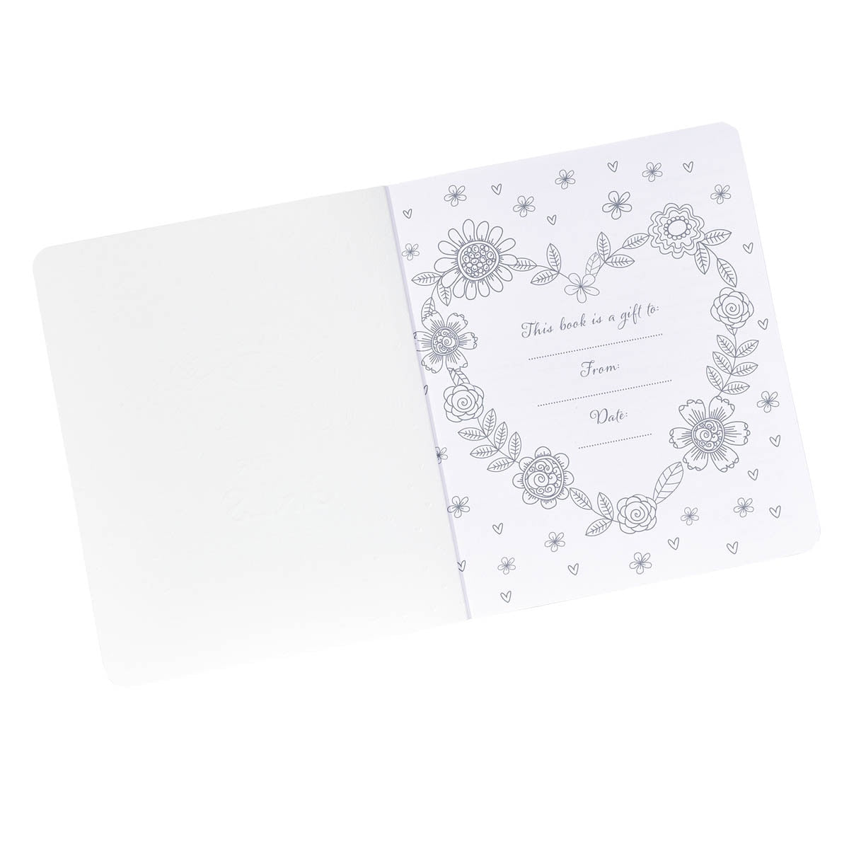- Pink cover with silver-foiled hearts and flowers