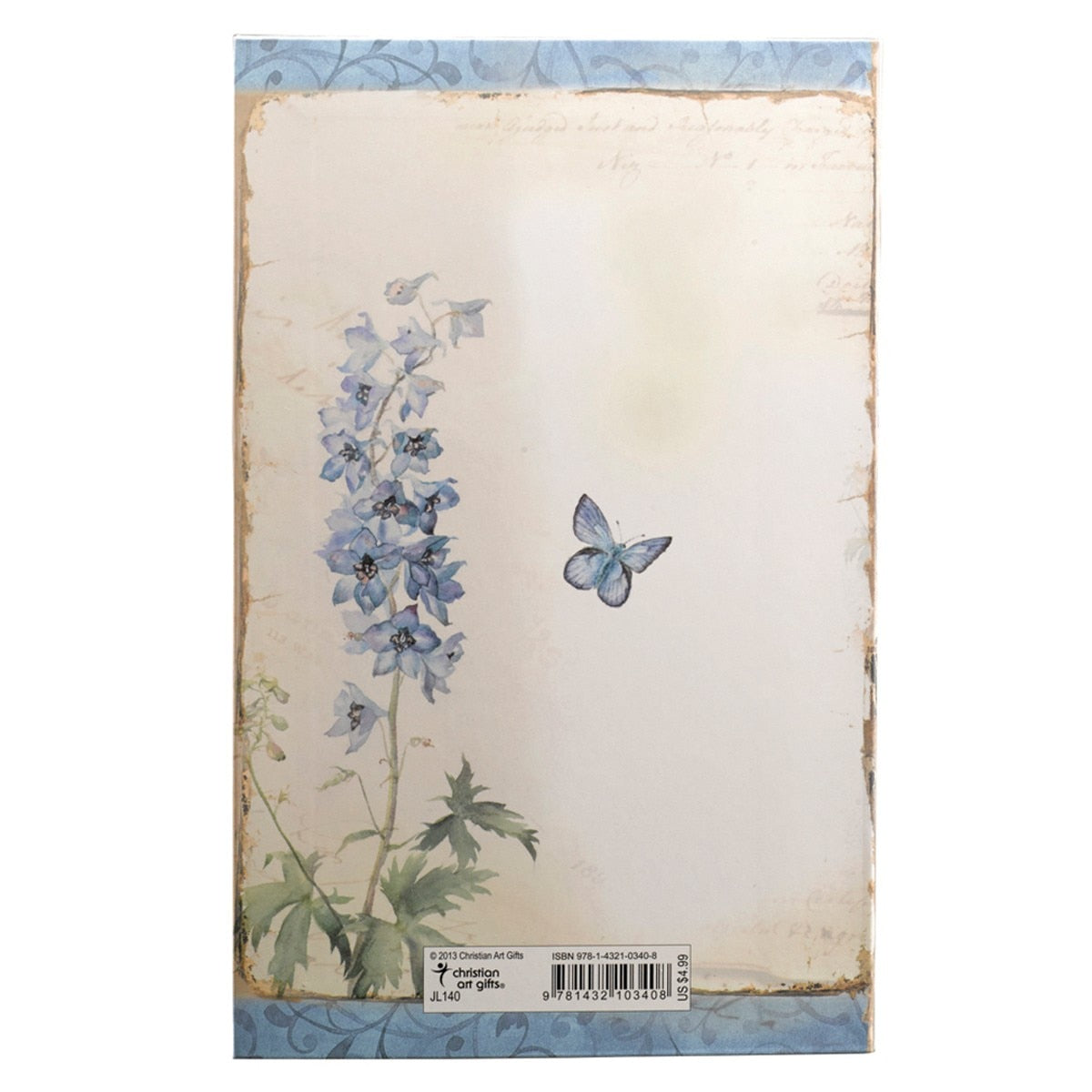 Every translucent blue, watercolored detail of this The Lord's Mercies Are New Flexcover Journal taken from Lamentations 3:22-23, communicates love and faith along with handwritten Scripture on burnt-edged parchment lend a feminine, intimate touch. Each of the 128 interior pages has 28 lines for writing and a Scripture verse for inspiration or contemplation. The presentation page has text from Nehemiah 8:10, The joy of the Lord is your strength, and space for inscription.