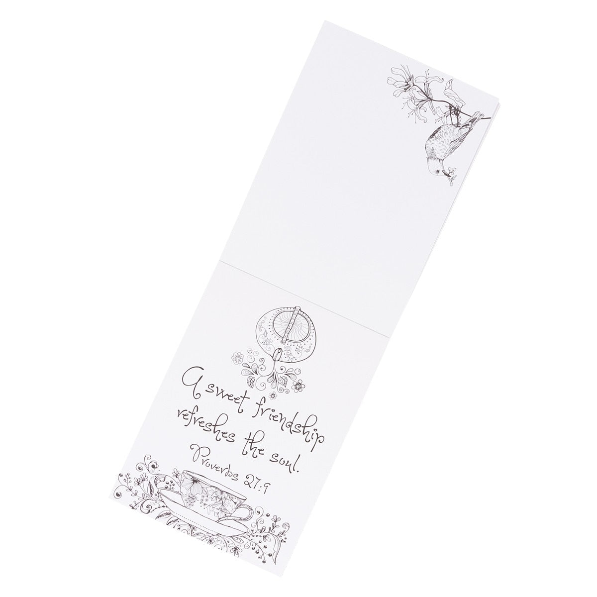 includes 20 exquisitely designed coloring cards, one side for coloring and the back side for a personal message. Each card is easy to tear out and perfect to give as a greeting to someone special.