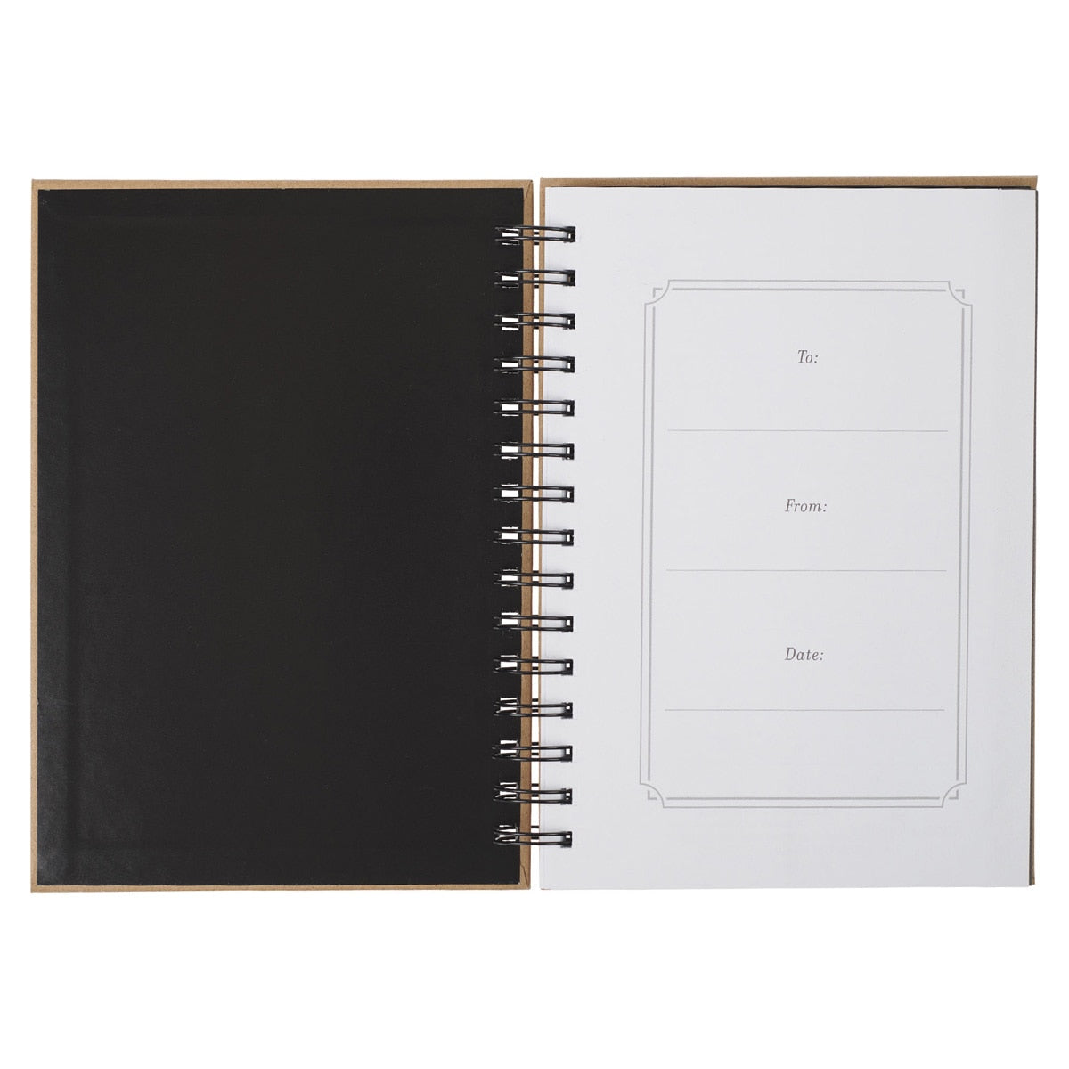 The interior covers are colored in glossy black, creating an elegant contrast to the matte exterior and perfectly matching the black wire binding. The journal features 192 lined pages, each with a Scripture printed at the bottom, providing inspiration with every turn of the page.