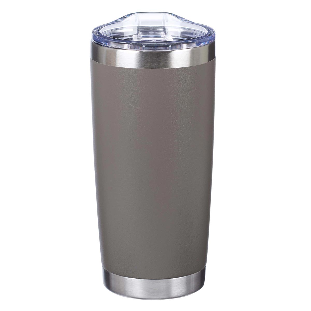 The temperature of your beverage is maintained by double insulated walls that hold the temperature steady for up to 24 hours. The insulation also prevents condensation, and this bodes well for all wood surfaces. A clear plastic lid with a silicone ring fits snuggly into the mouth of the mug, and a retractable sip hole cover prevents any spills or leaks from the 18 fl oz mug. Stainless steel mugs make great birthday or Christmas gifts, and the Trust In The LORD Taupe Stainless Steel Mug is no different. Wrap it with a coffee shop gift card to celebrate a student, or add it to a Father's Day gift basket. The Trust In The LORD Taupe Stainless Steel Mug is sure to become his go-to mug!- Taupe background with silver stainless steel text